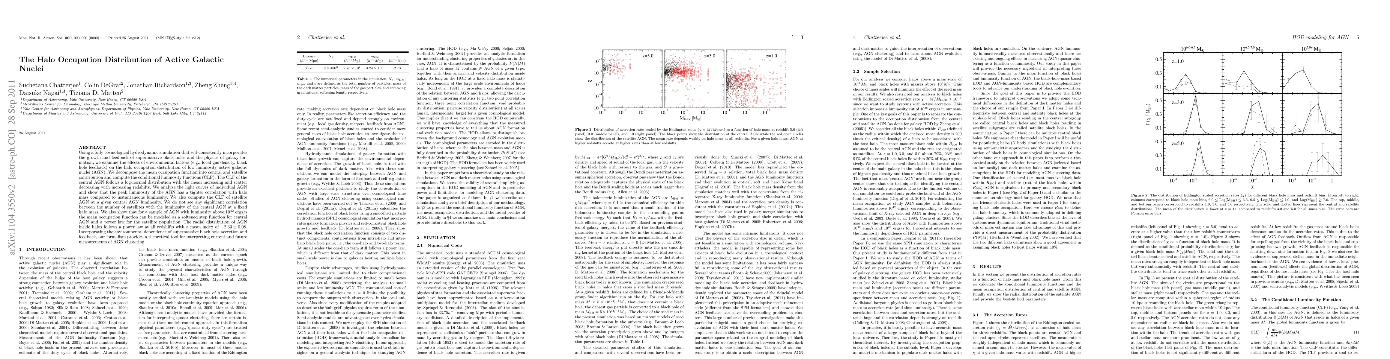 This paper investigates the halo occupation distribution of low luminosity active galactic nuclei (AGN) using a cosmological hydrodynamic simulation. It finds that central AGN luminosity correlates strongly with halo mass, while satellite AGN follow a power law distribution, with no significant correlation between satellite number and central AGN luminosity.