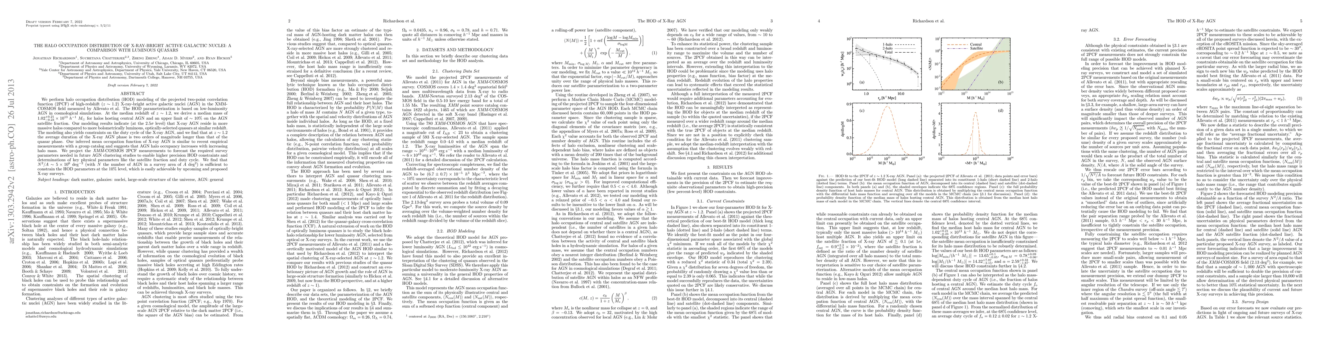 This study uses halo occupation distribution (HOD) modeling to compare the environments of X-ray-bright active galactic nuclei (AGN) with luminous quasars at high redshifts. The findings suggest that X-ray AGN reside in more massive halos than quasars and have a longer active phase, with AGN occupancy increasing with halo mass. Future surveys requiring N^{2}/A~5x10^{6} deg^{-2} AGN density are projected to achieve precise HOD constraints.