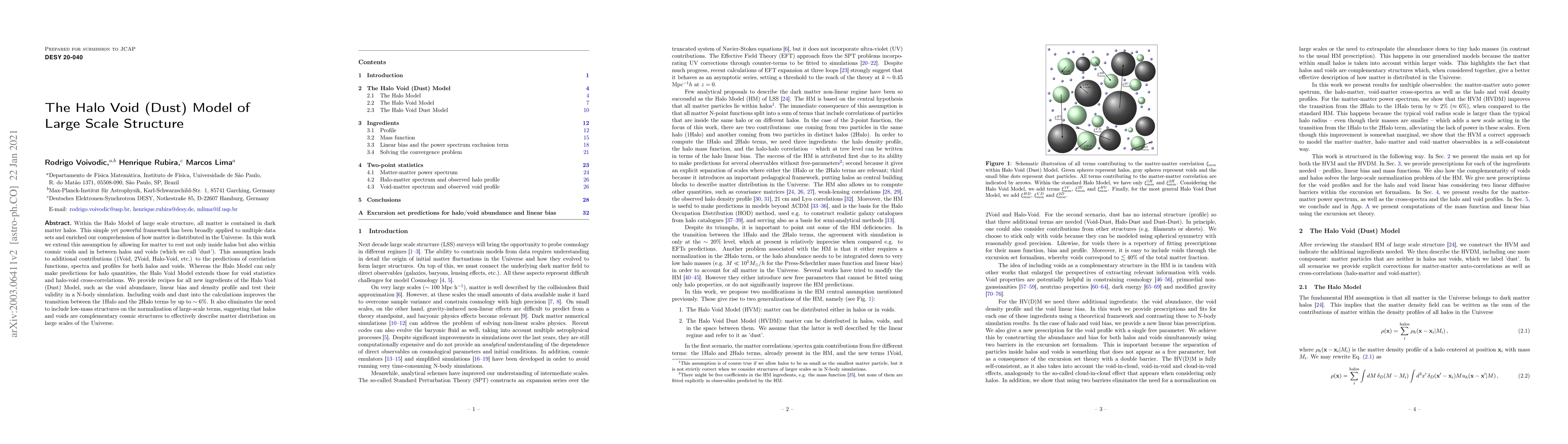 Within the Halo Model of large scale structure, all matter is contained in dark matter halos. This simple yet powerful framework has been broadly applied to multiple data sets and enriched our comprehension of how matter is distributed in the Universe. In this work we extend this assumption by allowing for matter to rest not only inside halos but also within cosmic voids and in between halos and voids (which we call 'dust'). This assumption leads to additional contributions (1Void, 2Void, Halo-Void, etc.) to the predictions of correlation functions, spectra and profiles for both halos and voids. Whereas the Halo Model can only make predictions for halo quantities, the Halo Void Model extends those for void statistics and halo-void cross-correlations. We provide recipes for all new ingredients of the Halo Void (Dust) Model, such as the void abundance, linear bias and density profile and test their validity in a N-body simulation. Including voids and dust into the calculations improves the transition between the 1Halo and the 2Halo terms by up to $\sim 6\%$. It also eliminates the need to include low-mass structures on the normalization of large-scale terms, suggesting that halos and voids are complementary cosmic structures to effectively describe matter distribution on large scales of the Universe.