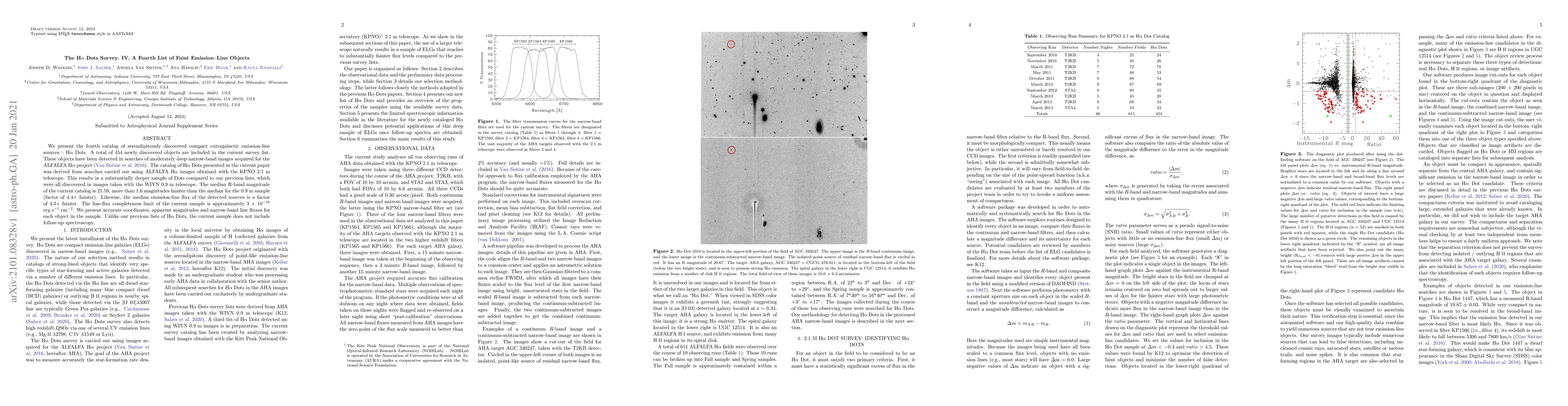 We present the fourth catalog of serendipitously discovered compact extragalactic emission-line sources -- H$\alpha$ Dots. A total of 454 newly discovered objects are included in the current survey list. These objects have been detected in searches of moderately deep narrow-band images acquired for the ALFALFA H$\alpha$ project (Van Sistine et al. 2016). The catalog of H-alpha Dots presented in the current paper was derived from searches carried out using ALFALFA H$\alpha$ images obtained with the KPNO 2.1 m telescope. This results in a substantially deeper sample of Dots compared to our previous lists, which were all discovered in images taken with the WIYN 0.9 m telescope. The median R-band magnitude of the current catalog is 21.59, more than 1.6 magnitudes fainter than the median for the 0.9~m sample (factor of 4.4x fainter). Likewise, the median emission-line flux of the detected sources is a factor of 4.3x fainter. The line-flux completeness limit of the current sample is approximately 3 x 10$^{-16}$ erg/s/cm$^2$. We present accurate coordinates, apparent magnitudes and narrow-band line fluxes for each object in the sample. Unlike our previous lists of H$\alpha$ Dots, the current sample does not include follow-up spectroscopy.