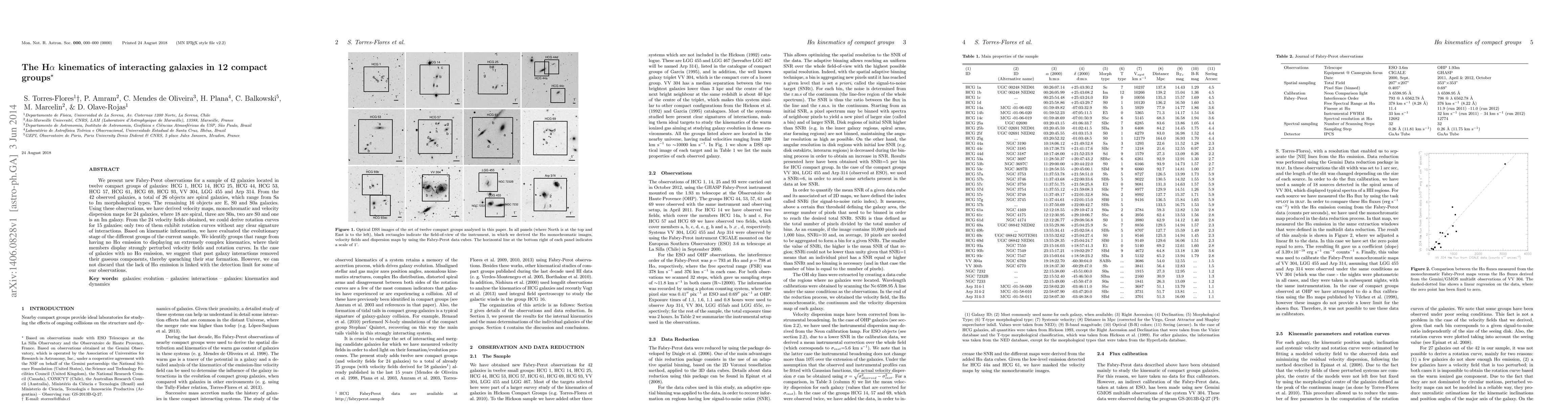 We present new Fabry-Perot observations for a sample of 42 galaxies located in twelve compact groups of galaxies: HCG 1, HCG 14, HCG 25, HCG 44, HCG 53, HCG 57, HCG 61, HCG 69, HCG 93, VV 304, LGG 455 and Arp 314. From the 42 observed galaxies, a total of 26 objects are spiral galaxies, which range from Sa to Im morphological types. The remaining 16 objects are E, S0 and S0a galaxies. Using these observations, we have derived velocity maps, monochromatic and velocity dispersion maps for 24 galaxies, where 18 are spiral, three are S0a, two are S0 and one is an Im galaxy. From the 24 velocity fields obtained, we could derive rotation curves for 15 galaxies; only two of them exhibit rotation curves without any clear signature of interactions. Based on kinematic information, we have evaluated the evolutionary stage of the different groups of the current sample. We identify groups that range from having no H$\alpha$ emission to displaying an extremely complex kinematics, where their members display strongly perturbed velocity fields and rotation curves. In the case of galaxies with no H$\alpha$ emission, we suggest that past galaxy interactions removed their gaseous components, thereby quenching their star formation. However, we can not discard that the lack of H$\alpha$ emission is linked with the detection limit for some of our observations.