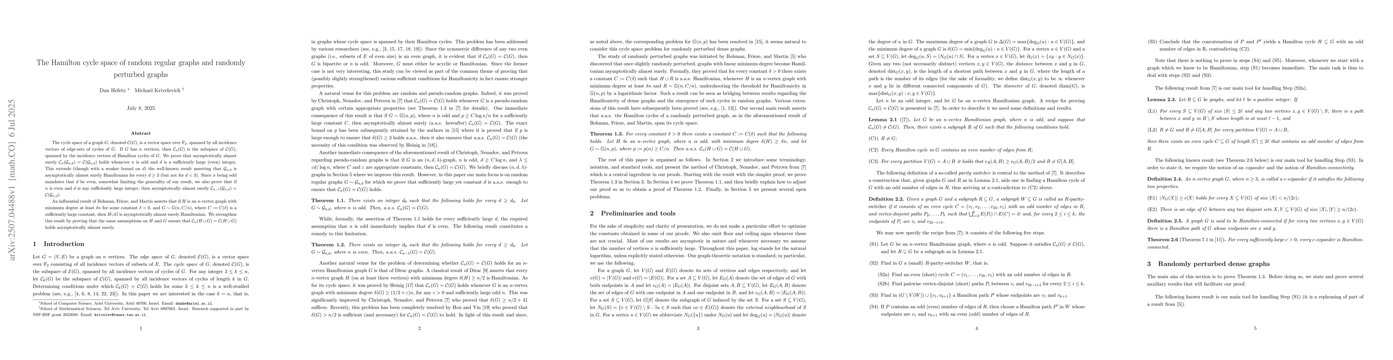 The cycle space of a graph $G$, denoted $C(G)$, is a vector space over ${\mathbb F}_2$, spanned by all incidence vectors of edge-sets of cycles of $G$. If $G$ has $n$ vertices, then $C_n(G)$ is the subspace of $C(G)$, spanned by the incidence vectors of Hamilton cycles of $G$. We prove that asymptotically almost surely $C_n(G_{n,d}) = C(G_{n,d})$ holds whenever $n$ is odd and $d$ is a sufficiently large (even) integer. This extends (though with a weaker bound on $d$) the well-known result asserting that $G_{n,d}$ is asymptotically almost surely Hamiltonian for every $d \geq 3$ (but not for $d < 3$). Since $n$ being odd mandates that $d$ be even, somewhat limiting the generality of our result, we also prove that if $n$ is even and $d$ is any sufficiently large integer, then asymptotically almost surely $C_{n-1}(G_{n,d}) = C(G_{n,d})$. An influential result of Bohman, Frieze, and Martin asserts that if $H$ is an $n$-vertex graph with minimum degree at least $\delta n$ for some constant $\delta > 0$, and $G \sim \mathbb{G}(n, C/n)$, where $C := C(\delta)$ is a sufficiently large constant, then $H \cup G$ is asymptotically almost surely Hamiltonian. We strengthen this result by proving that the same assumptions on $H$ and $G$ ensure that $C_n(H \cup G) = C(H \cup G)$ holds asymptotically almost surely.