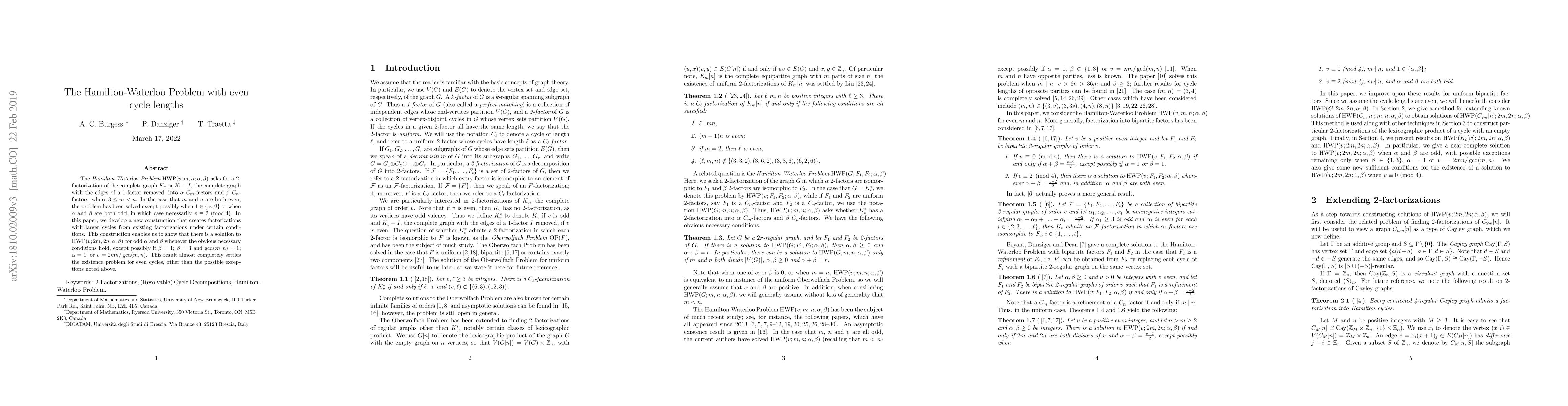 Researchers developed a new construction to solve the Hamilton-Waterloo Problem for even cycle lengths, finding solutions for odd alpha and beta values under certain conditions, except possibly in specific cases.