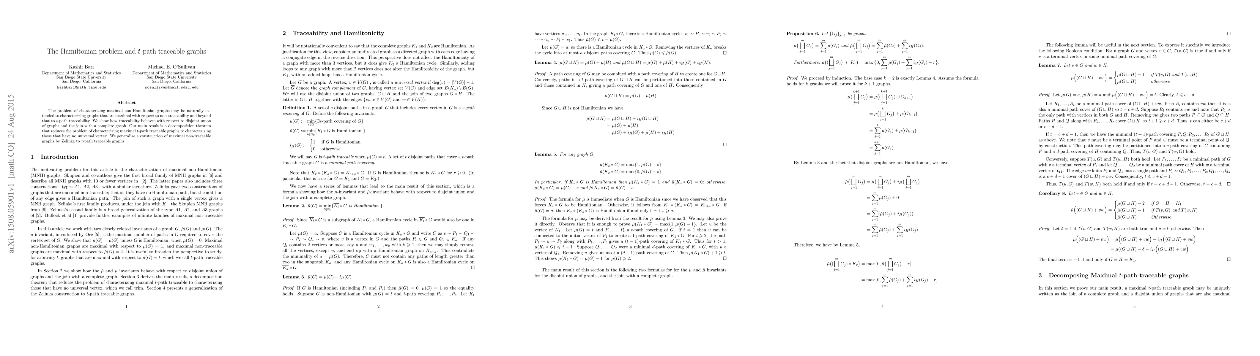 This paper explores the characterization of maximal $t$-path traceable graphs, demonstrating how traceability properties interact with graph unions and joins with complete graphs. The key result is a decomposition theorem that simplifies the problem by focusing on graphs without universal vertices.