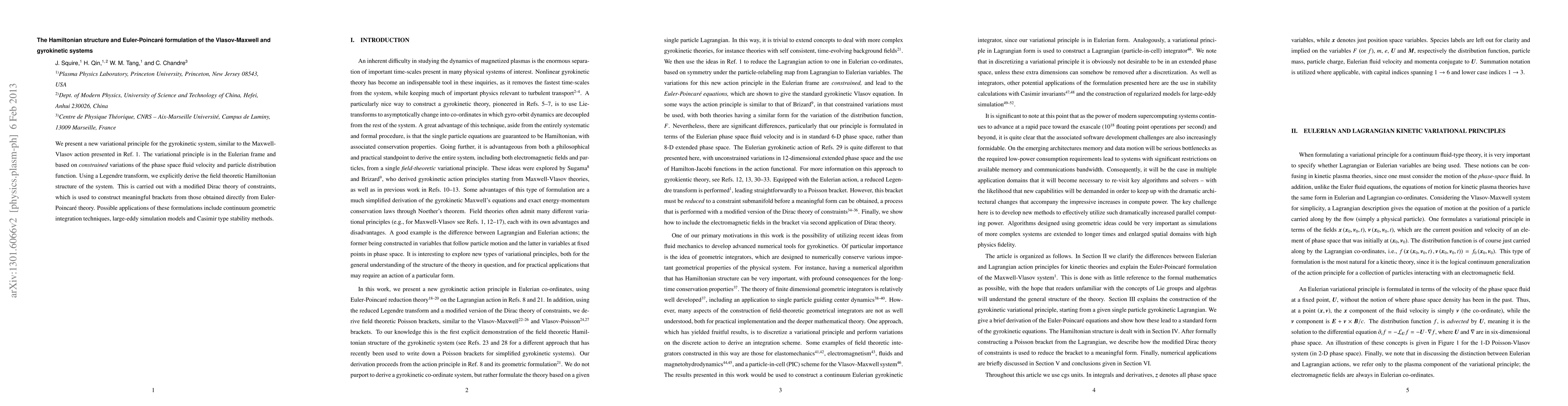 Researchers developed a new Hamiltonian structure and Euler-Poincaré formulation for the Vlasov-Maxwell and gyrokinetic systems, enabling new applications in continuum geometric integration, large-eddy simulation, and Casimir-type stability methods.