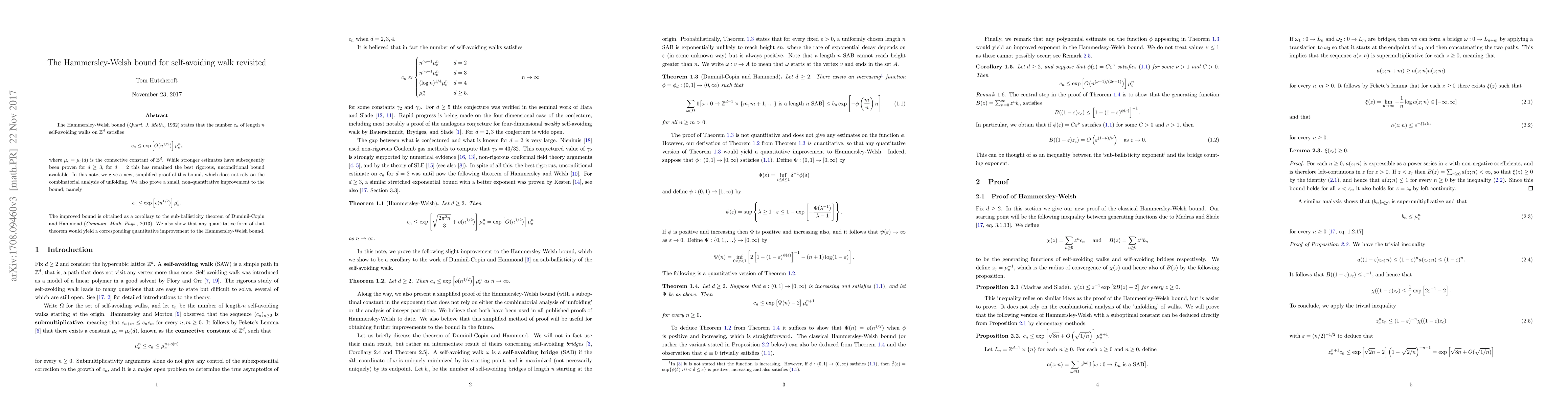 The Hammersley-Welsh bound (1962) states that the number $c_n$ of length $n$ self-avoiding walks on $\mathbb{Z}^d$ satisfies \[ c_n \leq \exp \left[ O(n^{1/2}) \right] \mu_c^n, \] where $\mu_c=\mu_c(d)$ is the connective constant of $\mathbb{Z}^d$. While stronger estimates have subsequently been proven for $d\geq 3$, for $d=2$ this has remained the best rigorous, unconditional bound available. In this note, we give a new, simplified proof of this bound, which does not rely on the combinatorial analysis of unfolding. We also prove a small, non-quantitative improvement to the bound, namely \[ c_n \leq \exp\left[ o(n^{1/2})\right] \mu_c^n. \] The improved bound is obtained as a corollary to the sub-ballisticity theorem of Duminil-Copin and Hammond (2013). We also show that any quantitative form of that theorem would yield a corresponding quantitative improvement to the Hammersley-Welsh bound.