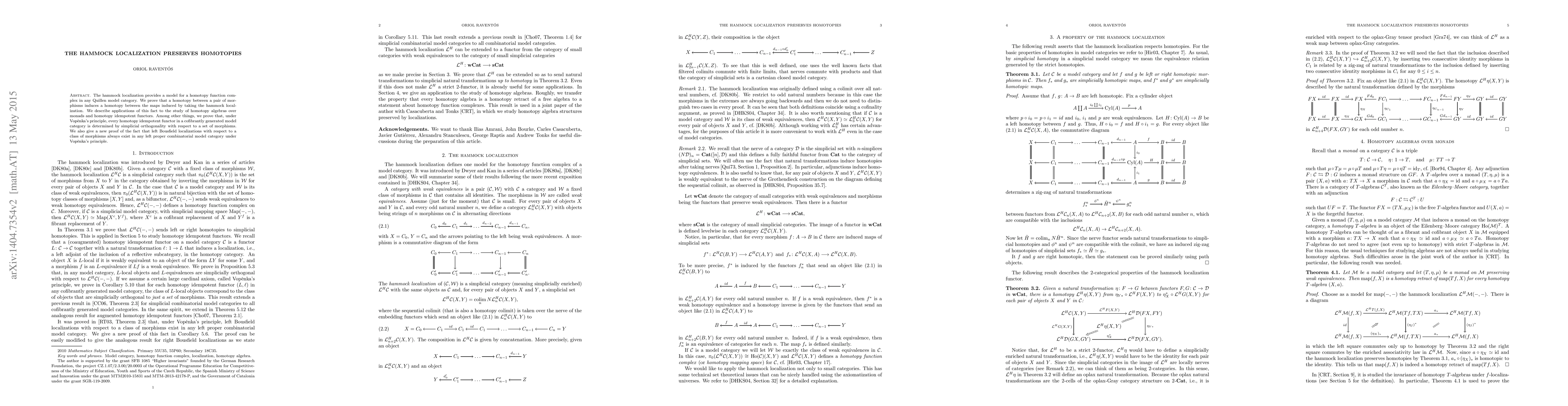 The hammock localization provides a model for a homotopy function complex in any Quillen model category. We prove that a homotopy between a pair of morphisms induces a homotopy between the maps induced by taking the hammock localization. We describe applications of this fact to the study of homotopy algebras over monads and homotopy idempotent functors. Among other things, we prove that, under Vop\v{e}nka's principle, every homotopy idempotent functor in a cofibrantly generated model category is determined by simplicial orthogonality with respect to a set of morphisms. We also give a new proof of the fact that left Bousfield localizations with respect to a class of morphisms always exist in any left proper combinatorial model category under Vop\v{e}nka's principle.