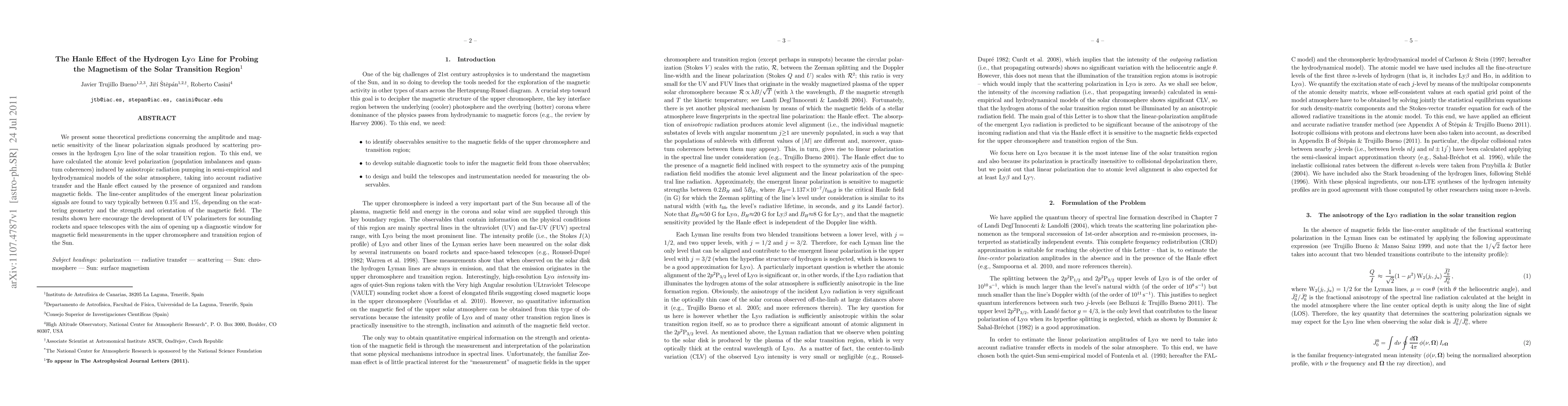 This paper theoretically predicts the amplitude and magnetic sensitivity of linear polarization signals in the hydrogen Ly-alpha line, revealing variations between 0.1% and 1% due to the Hanle effect in the solar transition region. The findings support the development of UV polarimeters for magnetic field diagnostics in the Sun's upper chromosphere and transition region.