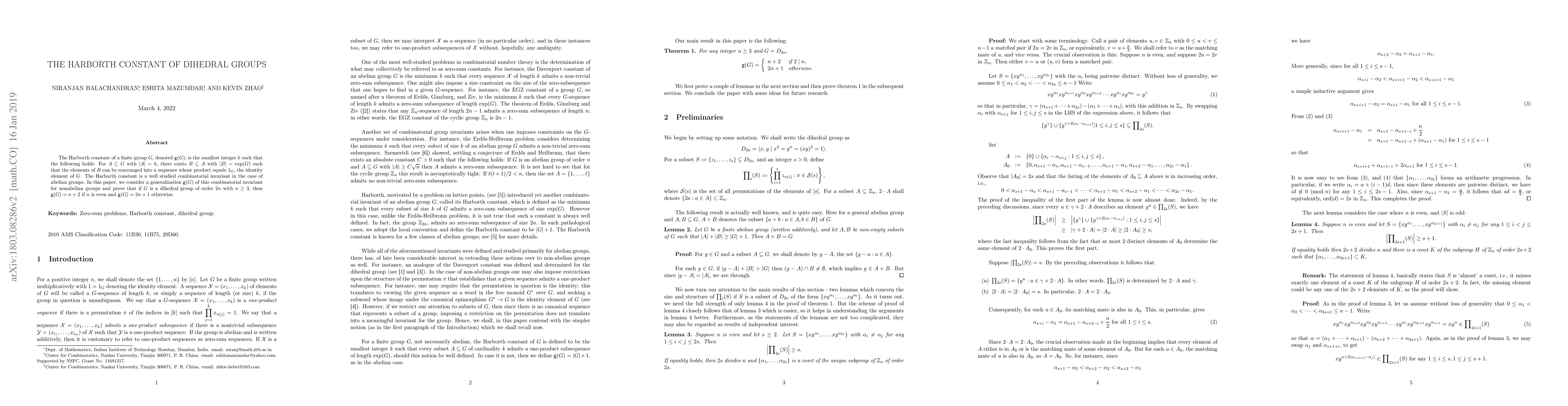 The Harborth constant of a finite group $G$, denoted $\gs(G)$, is the smallest integer $k$ such that the following holds: For $A\subseteq G$ with $|A|=k$, there exists $B\subseteq A$ with $|B|=\exp(G)$ such that the elements of $B$ can be rearranged into a sequence whose product equals $1_G$, the identity element of $G$. The Harborth constant is a well studied combinatorial invariant in the case of abelian groups. In this paper, we consider a generalization $\gs(G)$ of this combinatorial invariant for nonabelian groups and prove that if $G$ is a dihedral group of order $2n$ with $n\ge 3$, then $\gs(G) = n + 2$ if $n$ is even and $\gs(G) = 2n + 1$ otherwise.