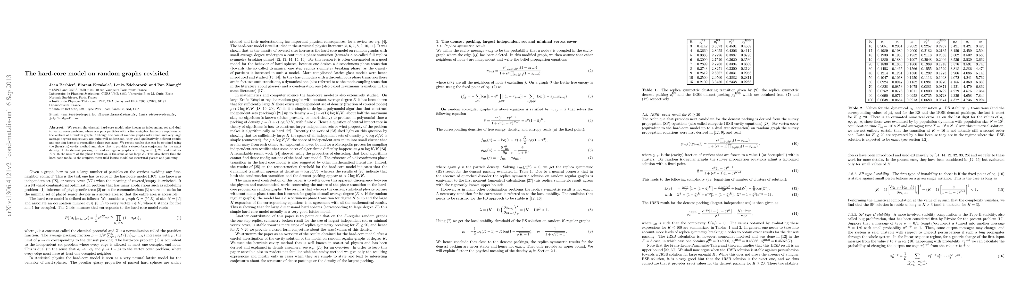 We revisit the classical hard-core model, also known as independent set and dual to vertex cover problem, where one puts particles with a first-neighbor hard-core repulsion on the vertices of a random graph. Although the case of random graphs with small and very large average degrees respectively are quite well understood, they yield qualitatively different results and our aim here is to reconciliate these two cases. We revisit results that can be obtained using the (heuristic) cavity method and show that it provides a closed-form conjecture for the exact density of the densest packing on random regular graphs with degree K>=20, and that for K>16 the nature of the phase transition is the same as for large K. This also shows that the hard-code model is the simplest mean-field lattice model for structural glasses and jamming.