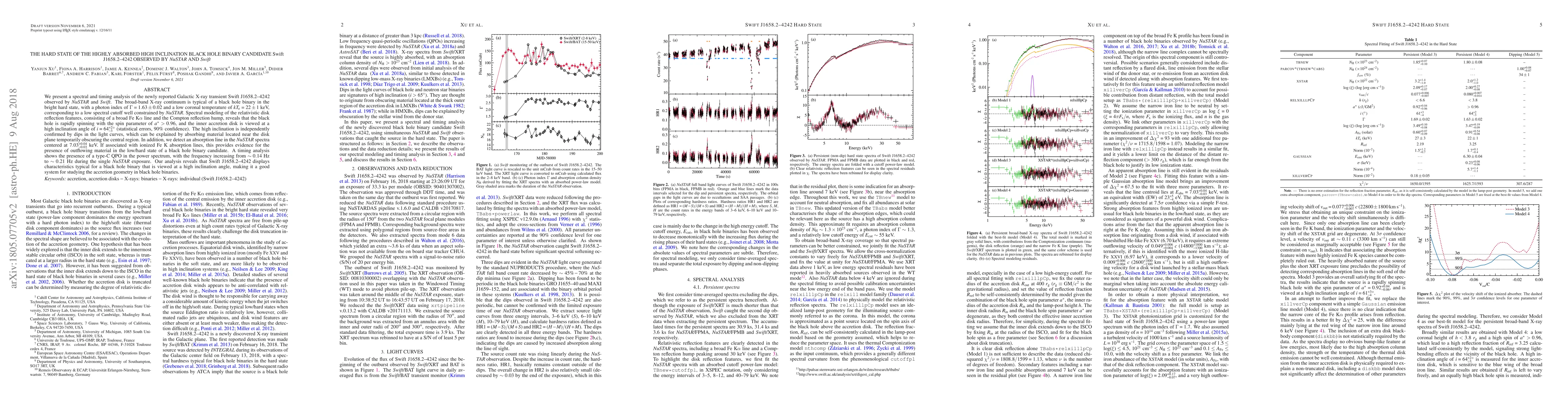 This paper analyzes the X-ray transient Swift J1658.2-4242, revealing it to be in the hard state with a rapidly spinning black hole and a high inclination angle of 64°. The study shows evidence of relativistic disk reflection features and an absorption line indicative of outflowing material.