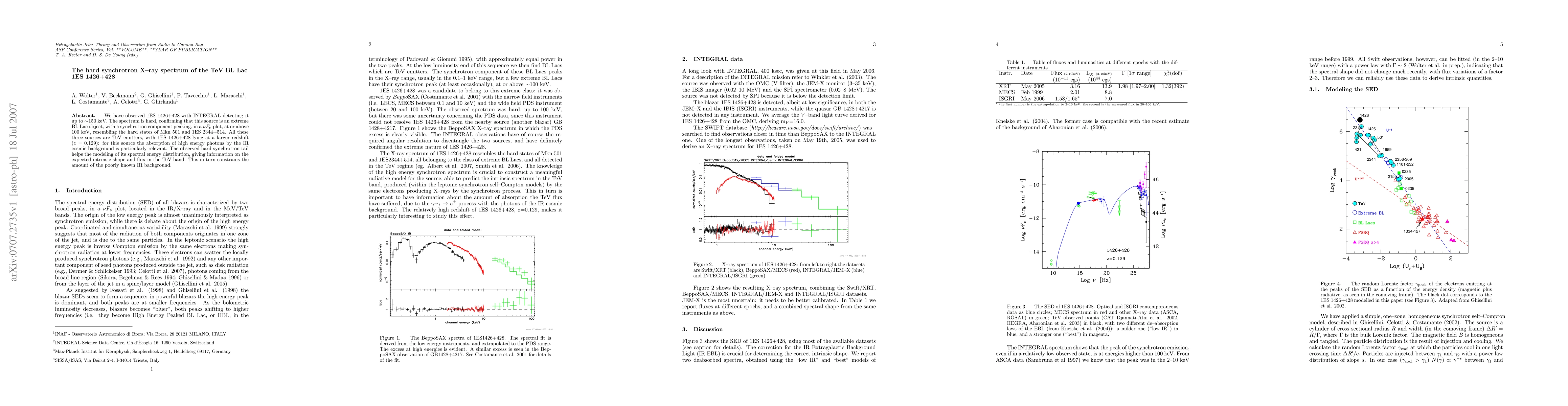 The TeV BL Lac object 1ES 1426+428 has a hard synchrotron X-ray spectrum peaking above 100 keV, similar to other TeV emitters like Mkn 501 and 1ES 2344+514. This observation constrains the amount of IR background necessary to model its spectral energy distribution.
