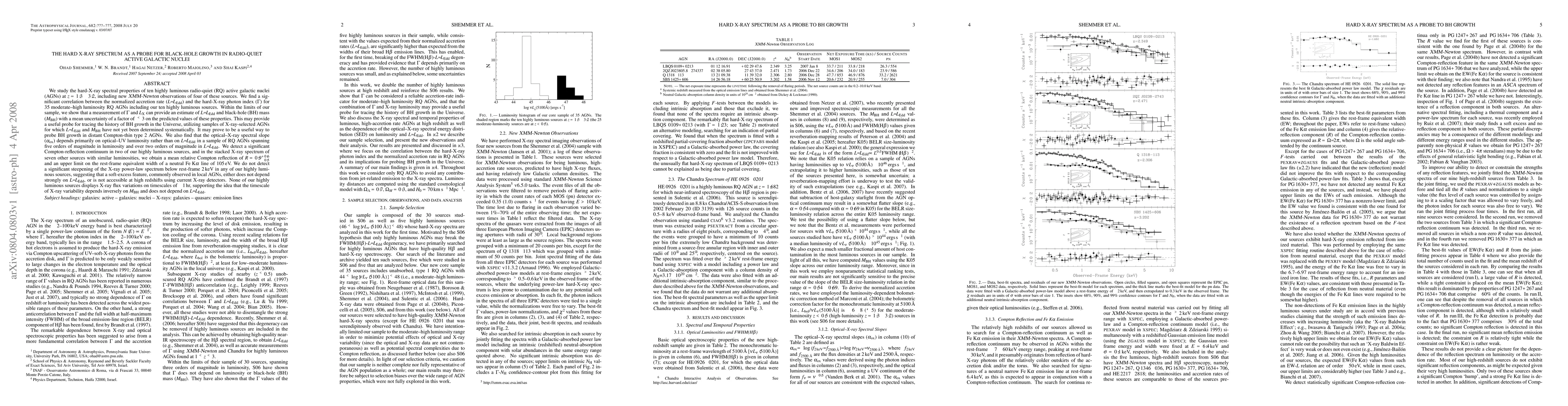 This study investigates the hard X-ray spectra of ten radio-quiet active galactic nuclei (AGNs) to correlate their X-ray photon index with accretion rates, revealing a potential method to estimate black-hole mass and growth history. The findings suggest that X-ray spectral properties can serve as a probe for black-hole growth in distant, Compton-thin AGNs.