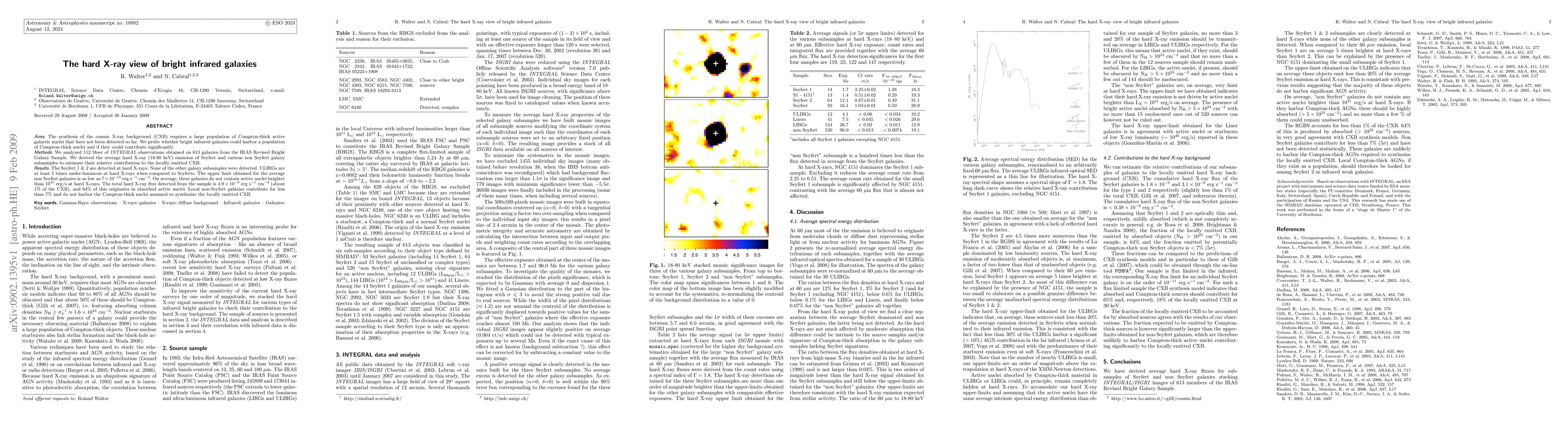 Aims. The synthesis of the cosmic X-ray background (CXB) requires a large population of Compton-thick active galactic nuclei that have not been detected so far. We probe whether bright infrared galaxies could harbor a population of Compton-thick nuclei and if they could contribute significantly. Methods. We analyzed 112 Msec of INTEGRAL observations obtained on 613 galaxies from the IRAS Revised Bright Galaxy Sample. We derived the average hard X-ray (18-80 keV) emission of Seyfert and various non Seyfert galaxy subsamples to estimate their relative contribution to the locally emitted CXB. Results. The Seyfert 1 & 2 are detected at hard X-rays. None of the other galaxy subsamples were detected. ULIRGs are at least 5 times under-luminous at hard X-rays when compared to Seyferts. The upper limit obtained for the average non Seyfert galaxies is as low as 7E-13 erg/s cm2. On average, these galaxies do not contain active nuclei brighter than 10E41 erg/s at hard X-rays. The total hard X-ray flux detected from the sample is 4.9E-9 erg/s cm2 (about 1% of the CXB), and 64% of this originates in absorbed active nuclei. Local non-Seyfert galaxies contribute for less than 7% and do not harbor the Compton-thick nuclei assumed to synthesize the locally emitted CXB.