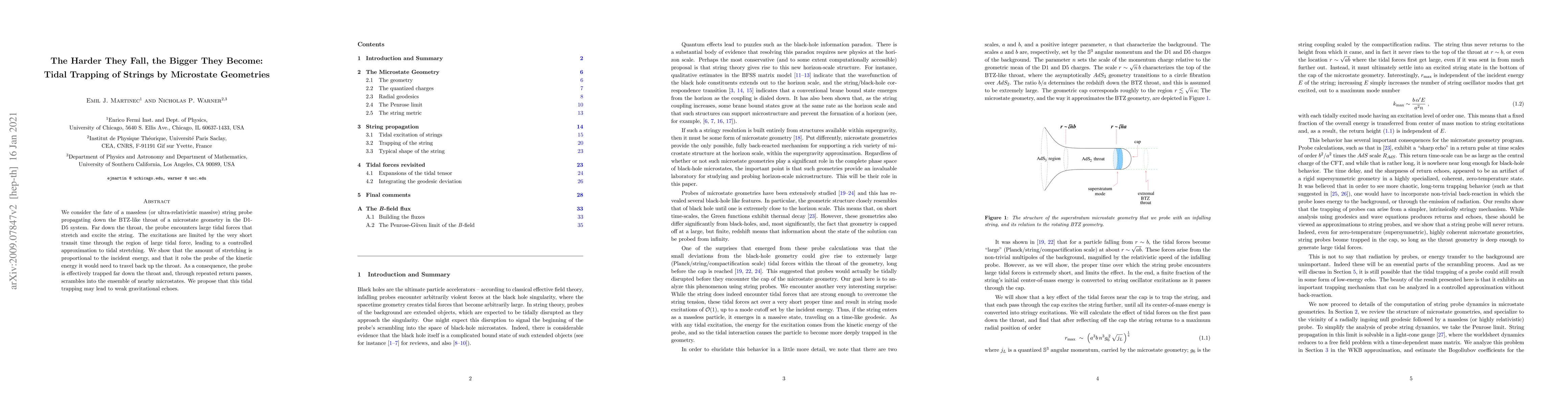 We consider the fate of a massless (or ultra-relativistic massive) string probe propagating down the BTZ-like throat of a microstate geometry in the D1-D5 system. Far down the throat, the probe encounters large tidal forces that stretch and excite the string. The excitations are limited by the very short transit time through the region of large tidal force, leading to a controlled approximation to tidal stretching. We show that the amount of stretching is proportional to the incident energy, and that it robs the probe of the kinetic energy it would need to travel back up the throat. As a consequence, the probe is effectively trapped far down the throat and, through repeated return passes, scrambles into the ensemble of nearby microstates. We propose that this tidal trapping may lead to weak gravitational echoes.