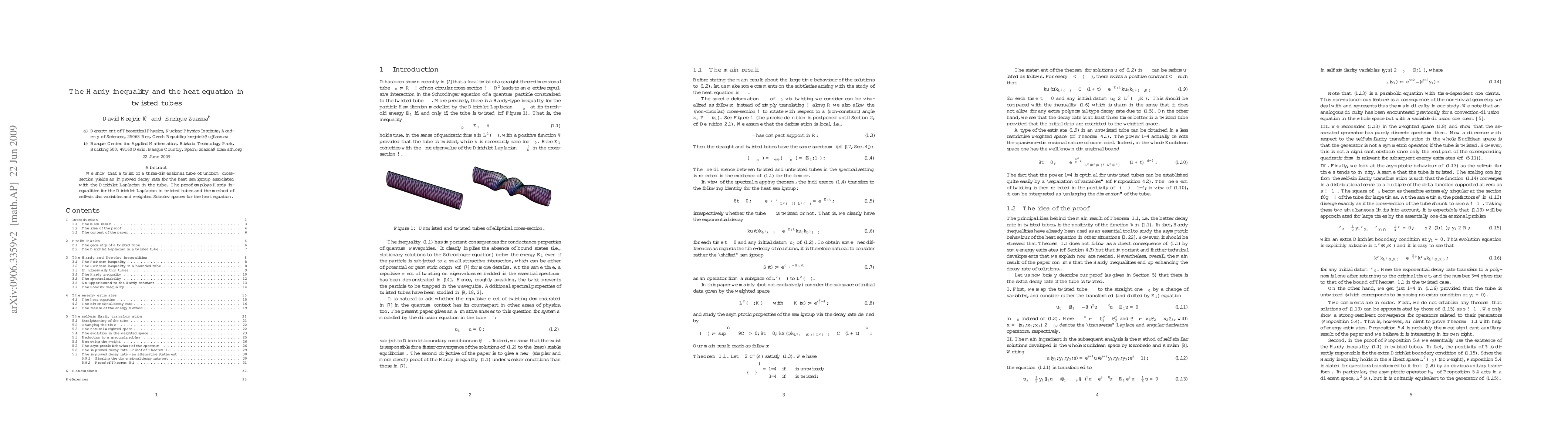 Summary: This paper demonstrates that twisting a three-dimensional tube enhances the decay rate of the heat semigroup for the Dirichlet Laplacian within it, utilizing Hardy inequalities and self-similar variables along with weighted Sobolev spaces.