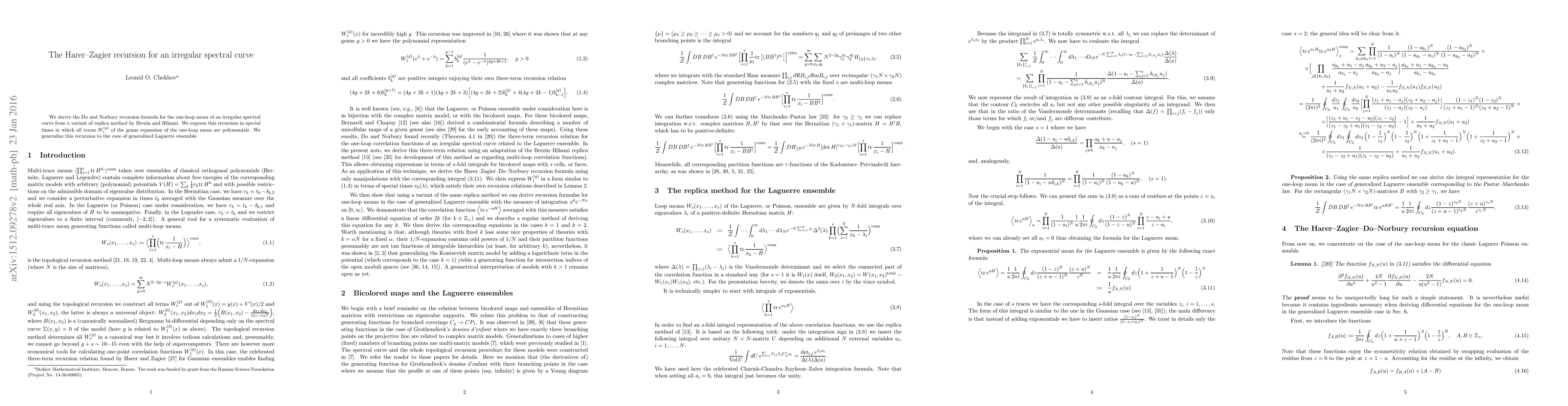 We derive the Do and Norbury recursion formula for the one-loop mean of an irregular spectral curve from a variant of replica method by Brez\'in and Hikami. We express this recursion in special times in which all terms $W_1^{(g)}$ of the genus expansion of the one-loop mean are polynomials. We find a generalization of this recursion to the generalized Laguerre polynomial case.