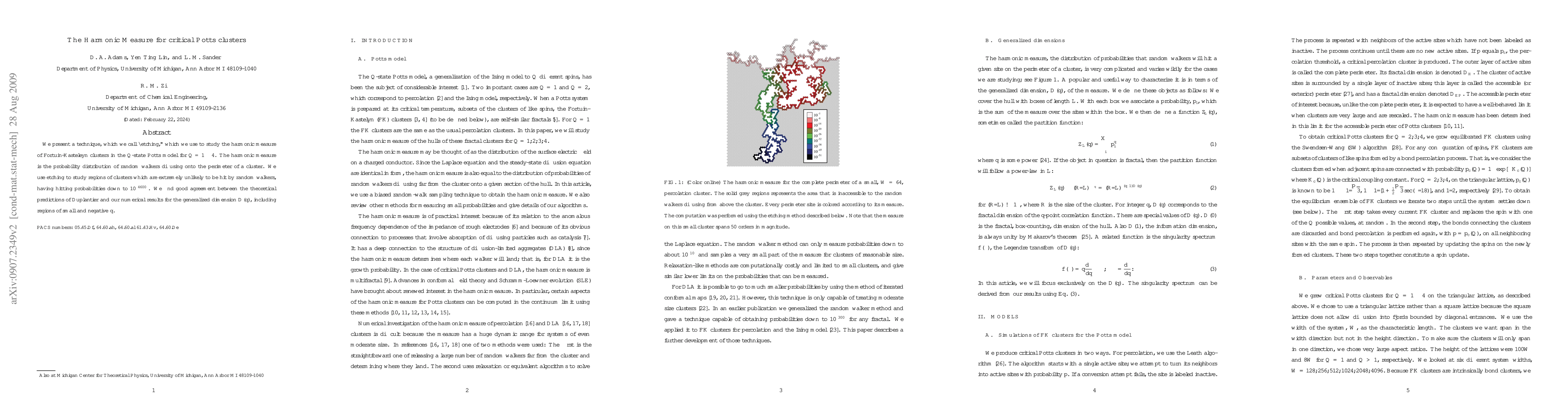 Researchers developed a technique called etching to study the harmonic measure of critical Potts clusters in the Q-state Potts model for Q=1-4, achieving good agreement with theoretical predictions for regions of small and negative q.