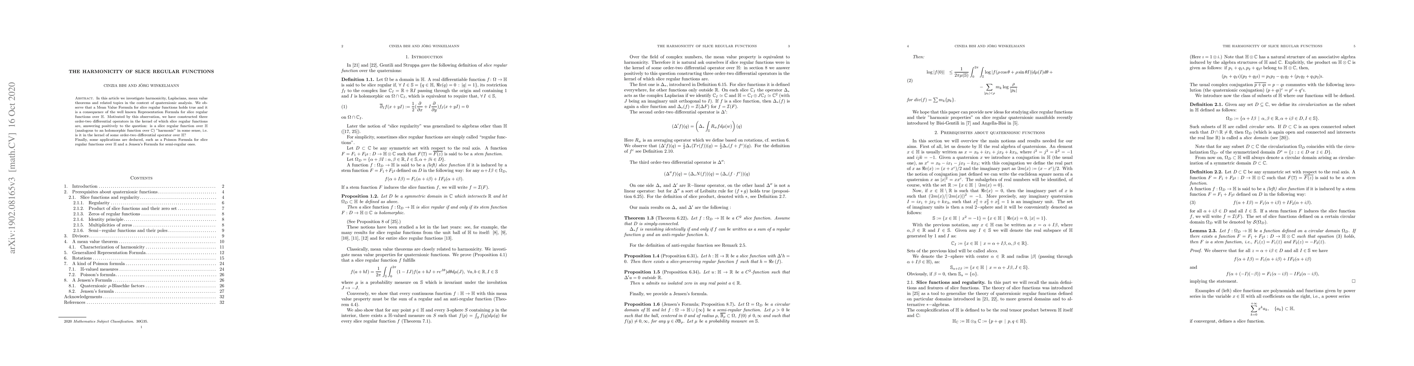 This paper explores harmonicity in quaternionic analysis, demonstrating that slice regular functions over quaternions satisfy a Mean Value Formula and are in the kernel of three constructed order-two differential operators, analogous to holomorphic functions in complex analysis. Applications include a Poisson Formula and a Jensen's Formula for slice regular functions.