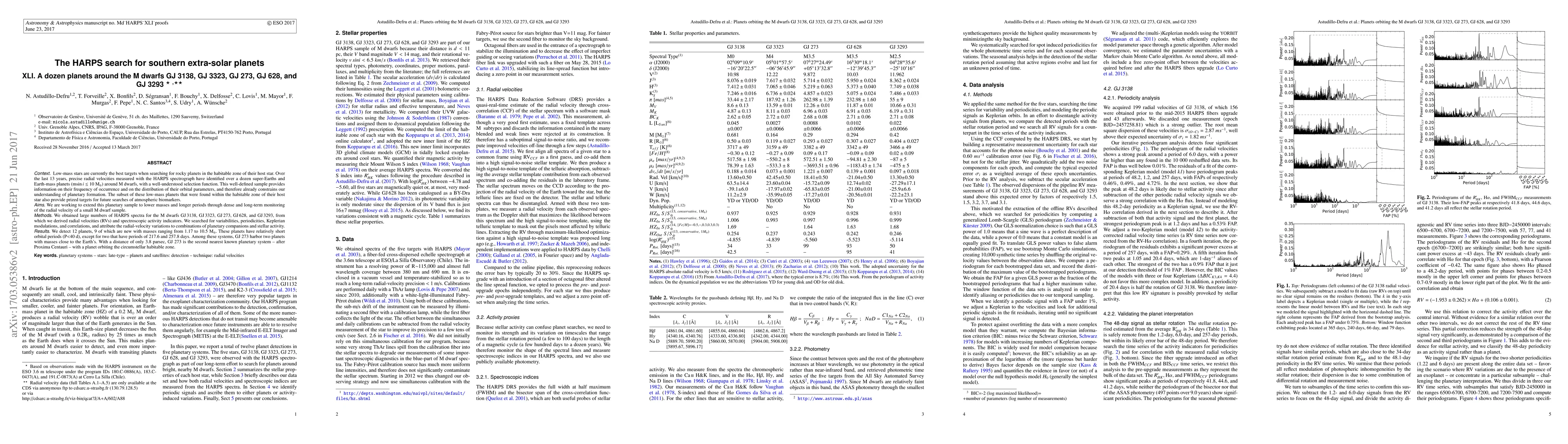 This paper reports the discovery of 12 planets, including 9 new ones, around five M dwarf stars using the HARPS spectrograph. The detected planets, ranging from 1.17 to 10.5 Earth masses, have short orbital periods, with two exceptions, and include Earth-mass planets in the habitable zone of GJ 273, the second nearest known planetary system.
