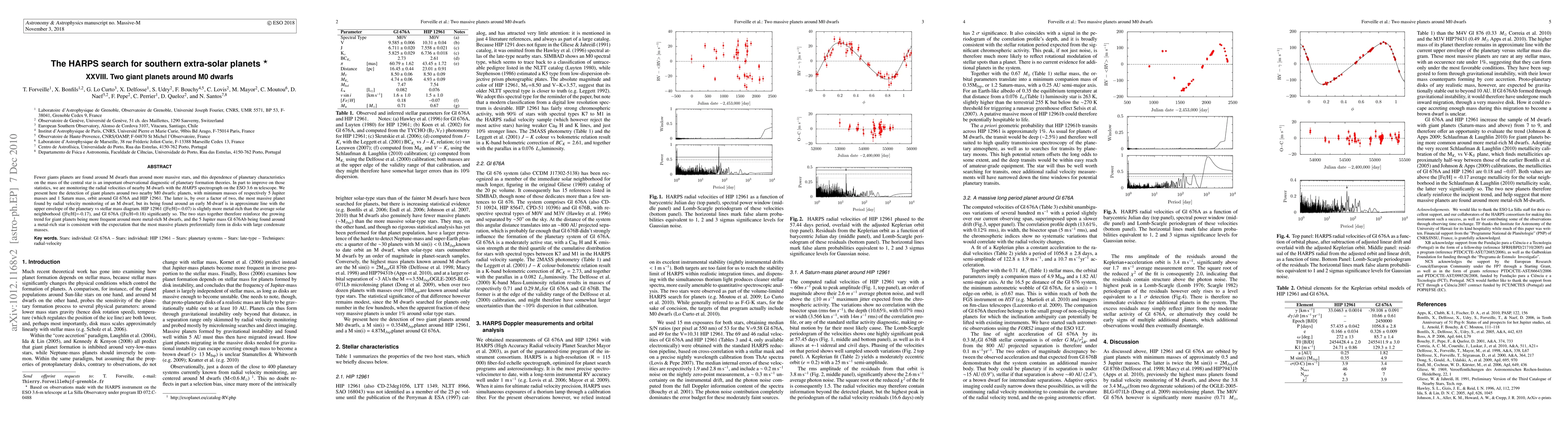 This paper reports the discovery of two giant planets orbiting M0 dwarf stars, Gl 676A and HIP 12961, using the HARPS spectrograph. The findings suggest that giant planets are more common around metal-rich M dwarfs, supporting theories that planet formation is influenced by the metallicity of the host star.