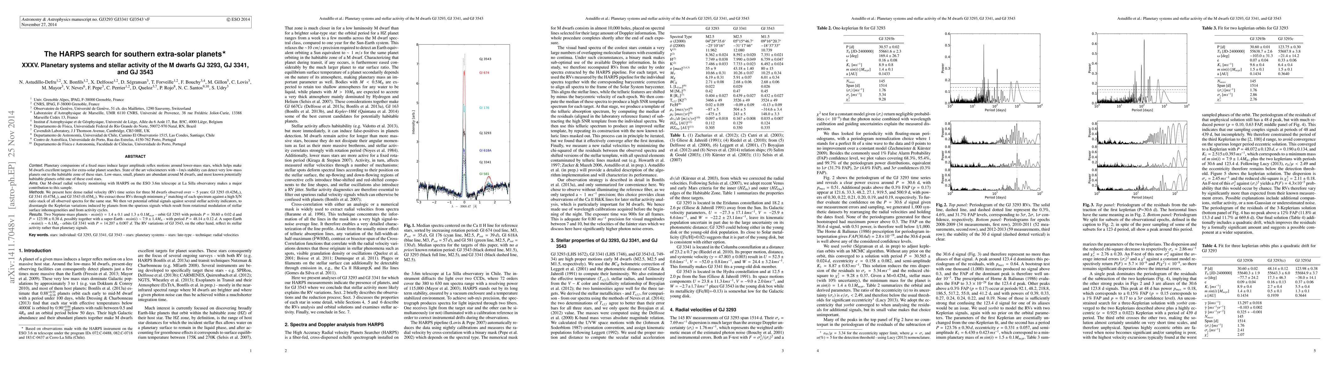 This study uses HARPS spectrographs to detect planets around three M dwarfs, finding two Neptune-mass planets orbiting GJ 3293 and a super-Earth around GJ 3341, while GJ 3543 shows no significant planetary signals, indicating stellar activity instead.
