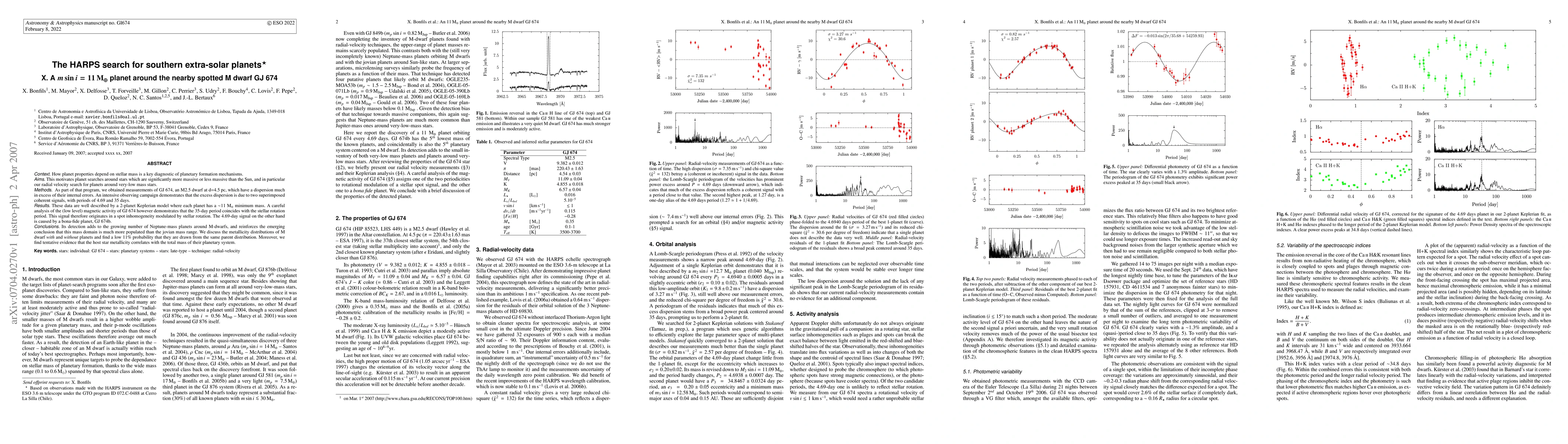The study identifies a Neptune-mass planet, GJ 674b, orbiting the nearby M dwarf GJ 674, confirming the presence of planets in the Neptune-mass range around low-mass stars. The 35-day signal is attributed to stellar rotation rather than a planet.