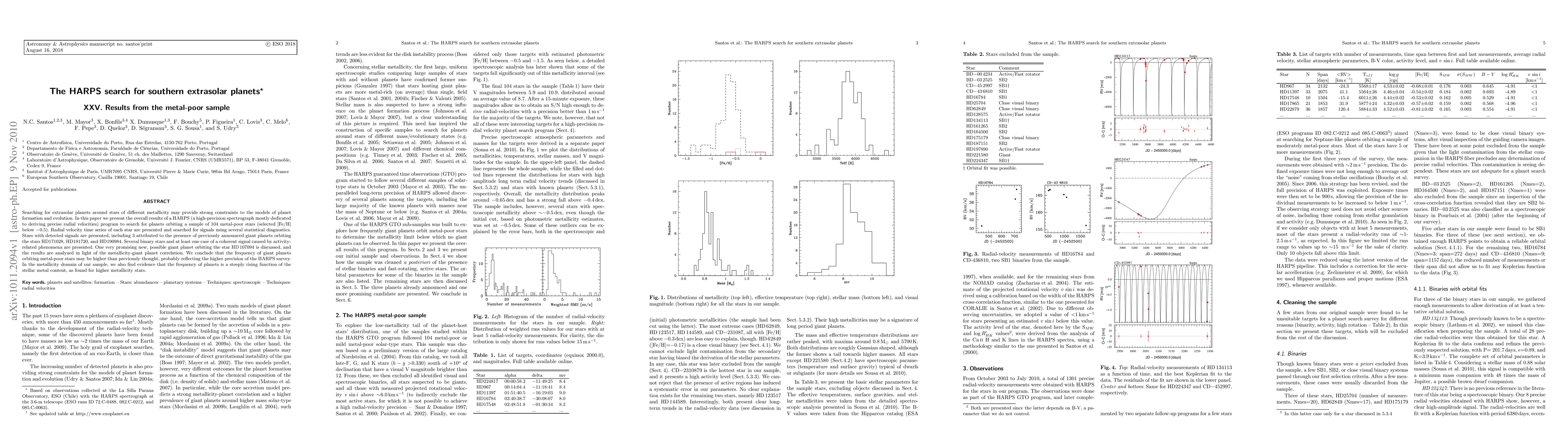 This study using the HARPS spectrograph found that the frequency of giant planets around metal-poor stars may be higher than previously thought, suggesting a strong correlation between stellar metallicity and planet formation. The survey identified several new potential giant planets, including one around HD107094, reinforcing the idea that planet frequency increases with stellar metal content.