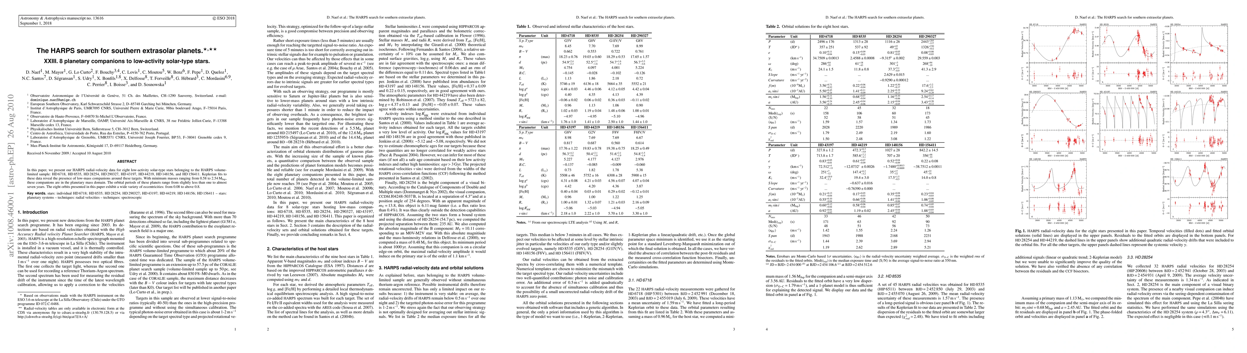 In this paper, we present our HARPS radial-velocity data for eight low-activity solar-type stars belonging to the HARPS volume-limited sample: HD6718, HD8535, HD28254, HD290327, HD43197, HD44219, HD148156, and HD156411. Keplerian fits to these data reveal the presence of low-mass companions around these targets. With minimum masses ranging from 0.58 to 2.54 MJup, these companions are in the planetary mass domain. The orbital periods of these planets range from slightly less than one to almost seven years. The eight orbits presented in this paper exhibit a wide variety of eccentricities: from 0.08 to above 0.8.