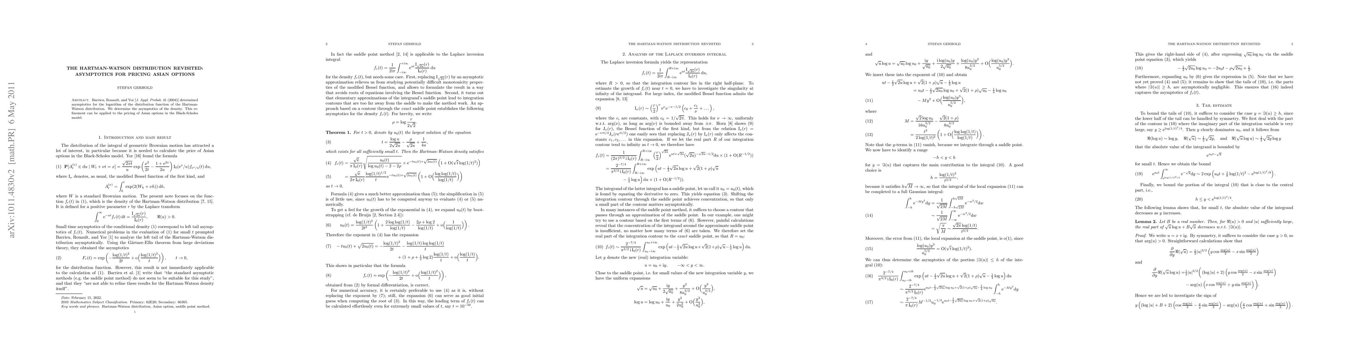 Barrieu, Rouault, and Yor [J. Appl. Probab. 41 (2004)] determined asymptotics for the logarithm of the distribution function of the Hartman-Watson distribution. We determine the asymptotics of the density. This refinement can be applied to the pricing of Asian options in the Black-Scholes model.