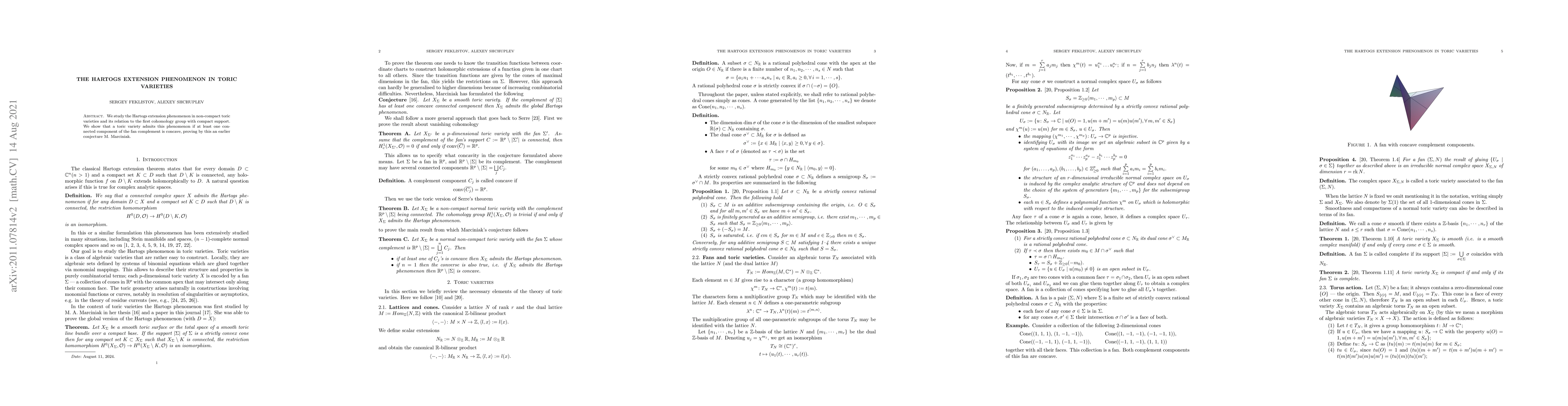 Summary: This paper investigates the Hartogs extension phenomenon in non-compact toric varieties, demonstrating that it occurs when at least one component of the fan complement is concave, thus confirming an earlier conjecture by M. Marciniak and linking it to the first cohomology group with compact support.