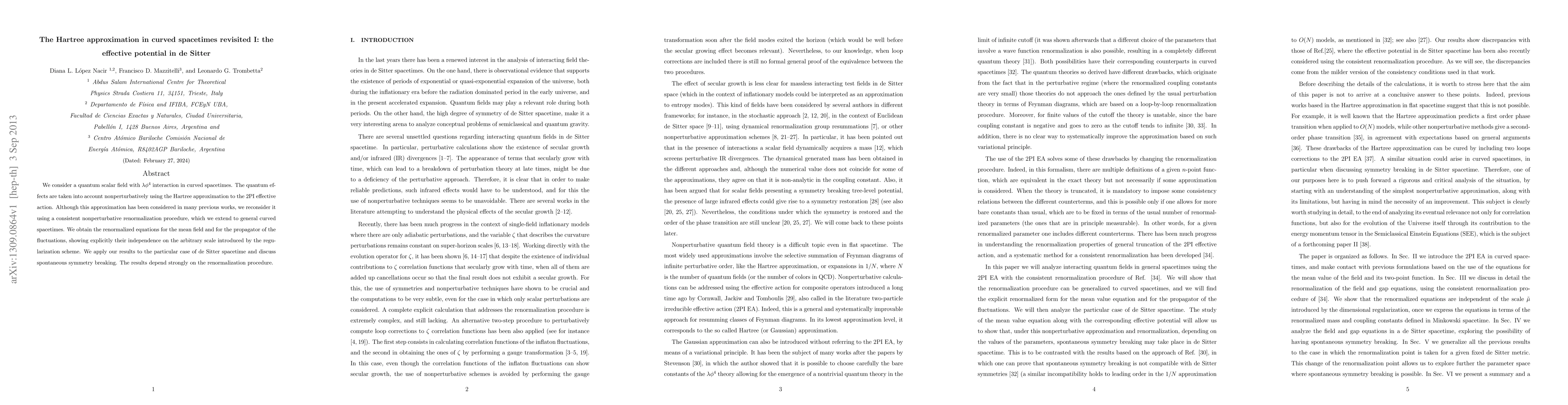This paper revisits the Hartree approximation for a quantum scalar field in curved spacetimes, employing a consistent nonperturbative renormalization procedure. The authors derive renormalized equations for the mean field and fluctuations, demonstrating their independence from regularization scales, and apply their findings to de Sitter spacetime, highlighting the impact of renormalization on spontaneous symmetry breaking.