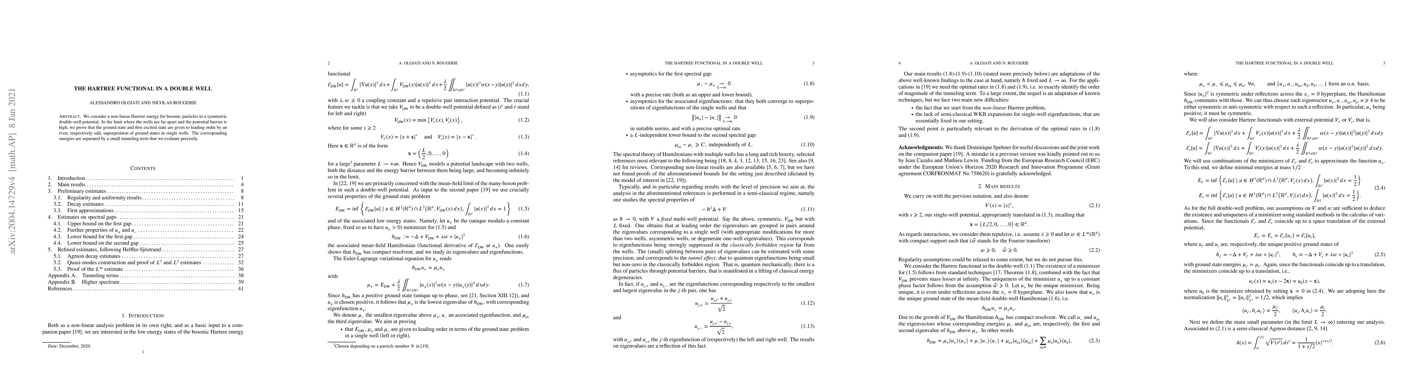 We consider a non-linear Hartree energy for bosonic particles in a symmetric double-well potential. In the limit where the wells are fare apart and the potential barrier is high, we prove that the ground state and first excited state are given to leading order by an even, respectively odd, superposition of ground states in single wells. We evaluate the resulting tunneling term splitting the corresponding energies precisely.