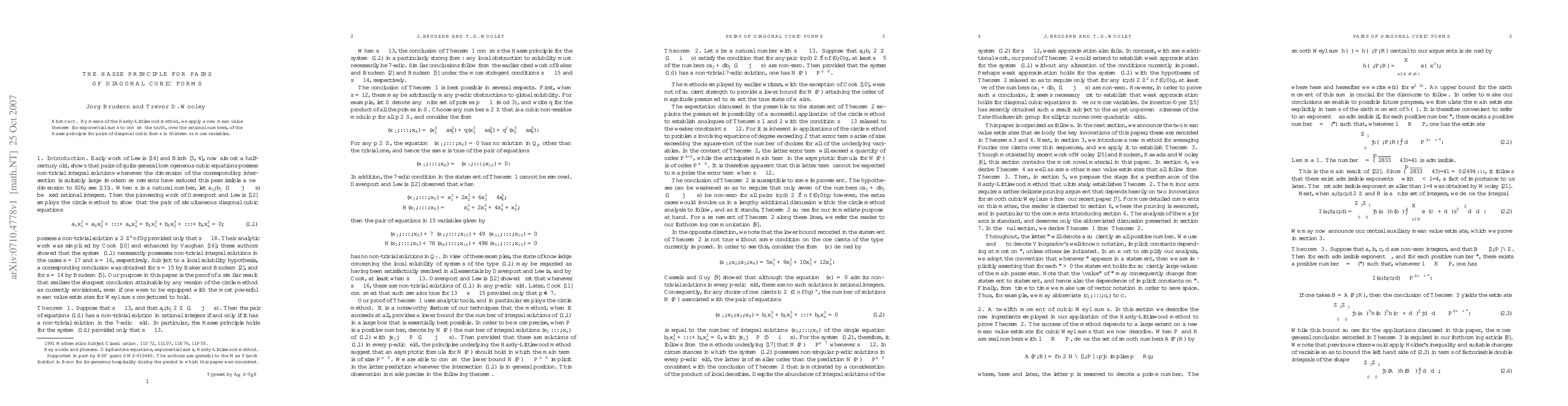 Summary: Utilizing the Hardy-Littlewood method and a novel mean value theorem for exponential sums, the paper confirms the validity of the Hasse principle for pairs of diagonal cubic forms in thirteen or more variables over rational numbers.