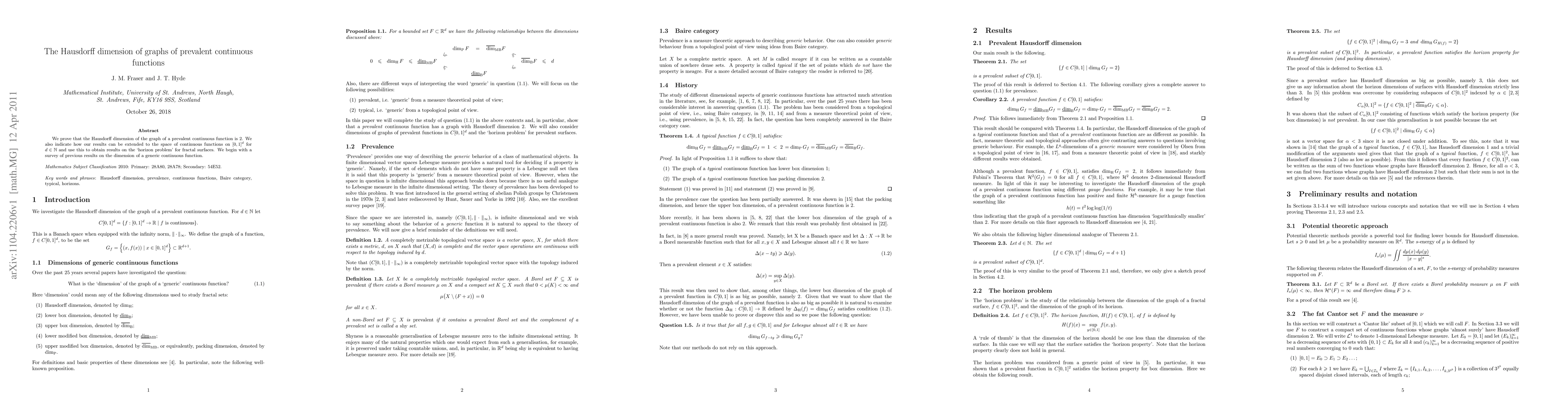 This paper proves that the Hausdorff dimension of the graph of a prevalent continuous function is 2, extending this result to continuous functions on [0,1]^d for any natural number d. The findings contribute to resolving the 'horizon problem' for fractal surfaces.