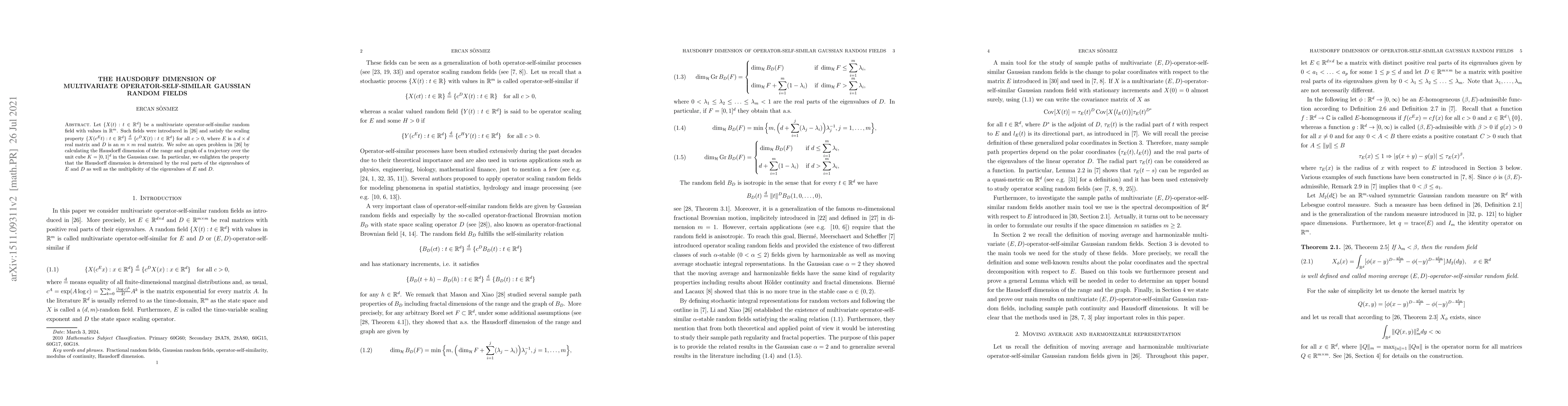 This paper calculates the Hausdorff dimension of multivariate operator-self-similar Gaussian random fields, solving an open problem by demonstrating that the dimension is determined by the real parts of the eigenvalues of scaling matrices and their multiplicities.