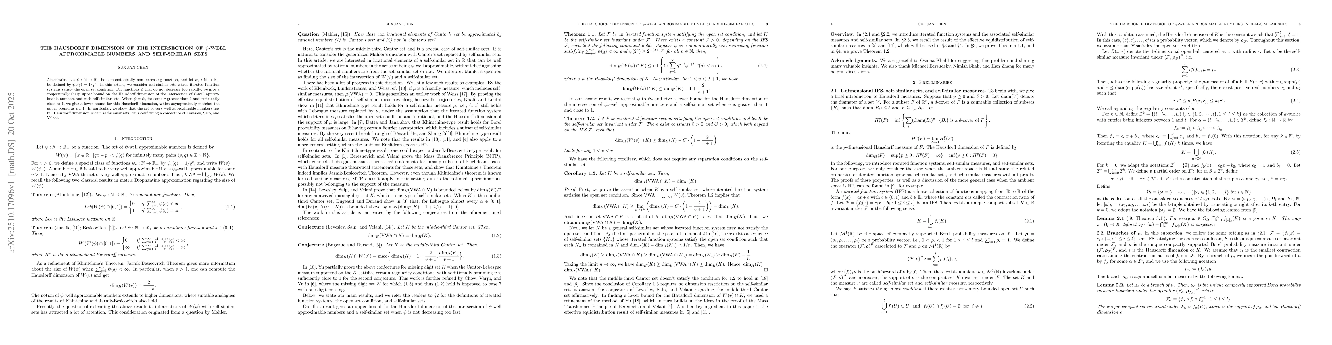The research employs a combination of fractal geometry, measure theory, and Diophantine approximation techniques to analyze the Hausdorff dimension of the set of well-approximable points intersected with self-similar fractals.