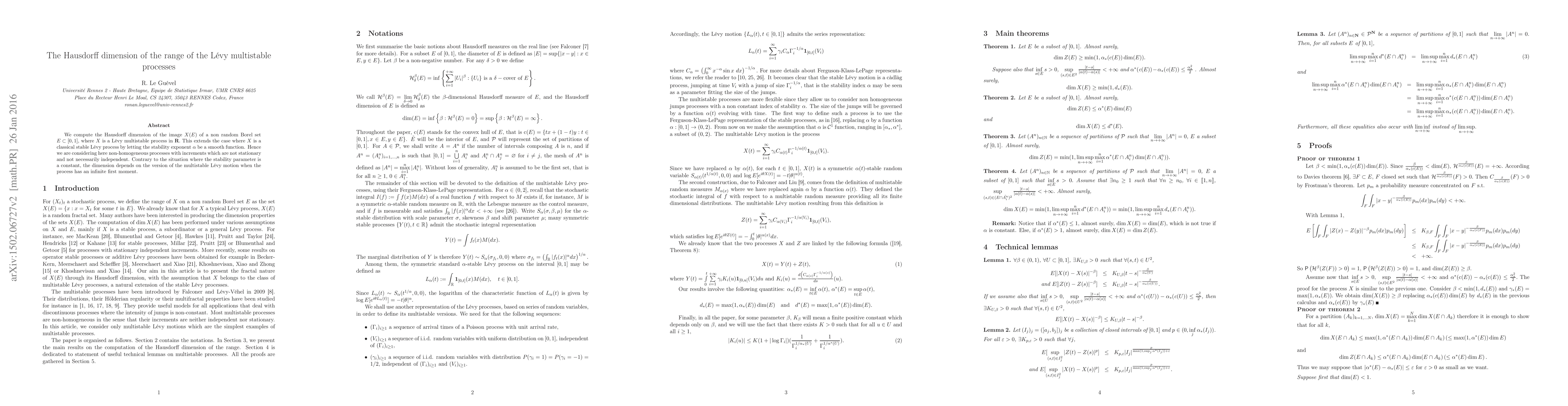 This paper computes the Hausdorff dimension of the range of a non-random set under a Lévy multistable process, extending the classical stable Lévy process to allow for a smooth stability exponent. The dimension varies depending on the specific version of the multistable process, especially when the process has an infinite first moment.