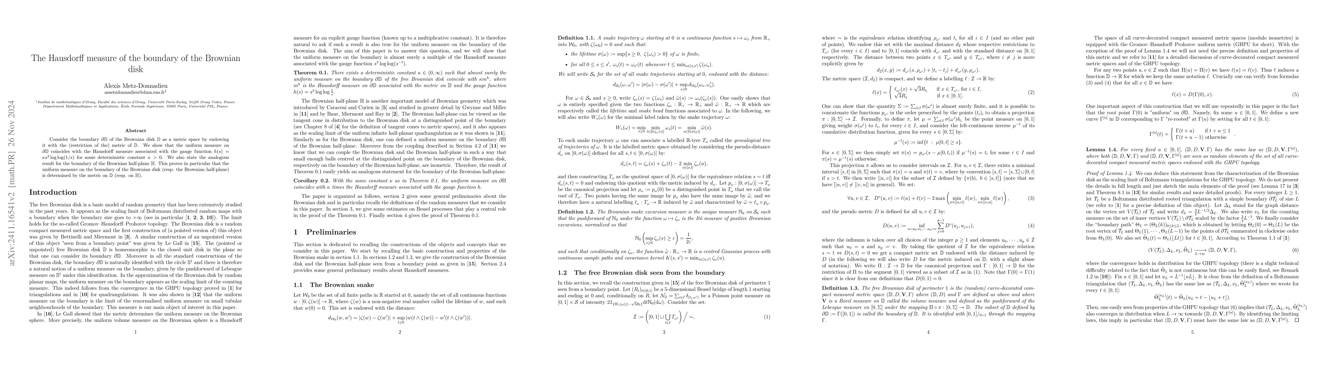 The paper proves that the uniform measure on the boundary of the Brownian disk is equivalent to the Hausdorff measure defined by $h(s)=\kappa s^2\log\log(1/s)$, for a constant $\kappa>0$. An analogous result is shown for the boundary of the Brownian half-plane, establishing metric-determined uniform measures for both.