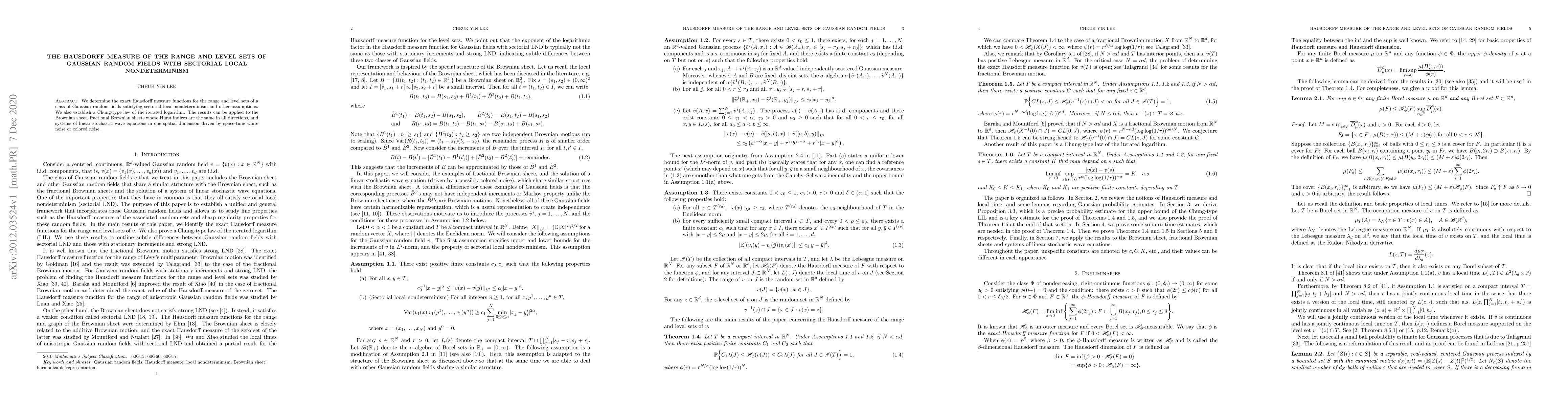 This paper determines the exact Hausdorff measure functions for the range and level sets of Gaussian random fields with sectorial local nondeterminism, and establishes a Chung-type law of the iterated logarithm, applicable to Brownian sheets, fractional Brownian sheets, and linear stochastic wave equations.