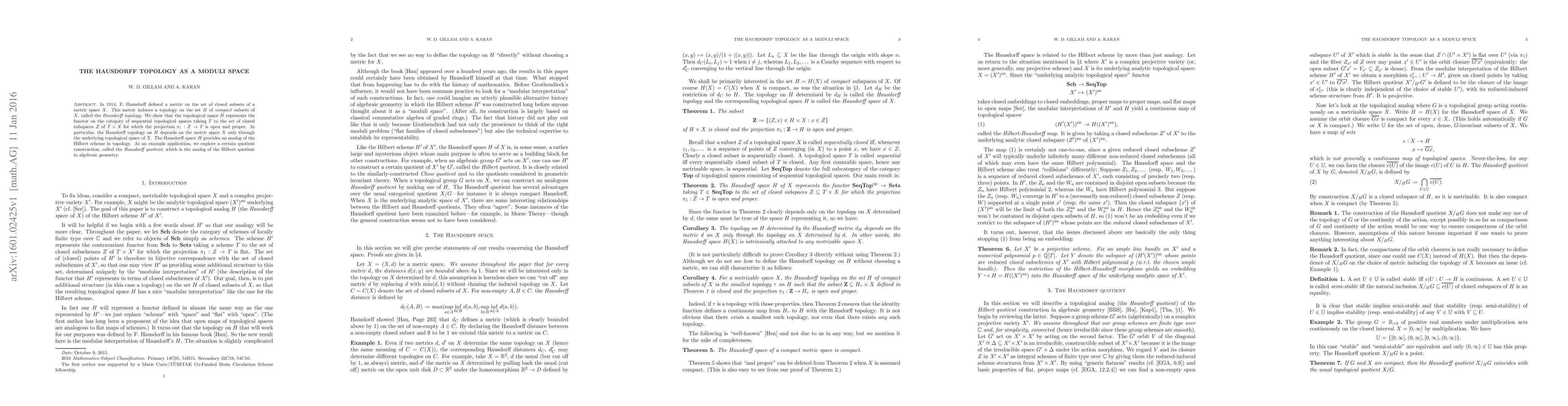 Researchers show that the Hausdorff topology on compact subsets of a metric space can be represented as a moduli space for sequential topological spaces, providing an analog to the Hilbert scheme in topology.