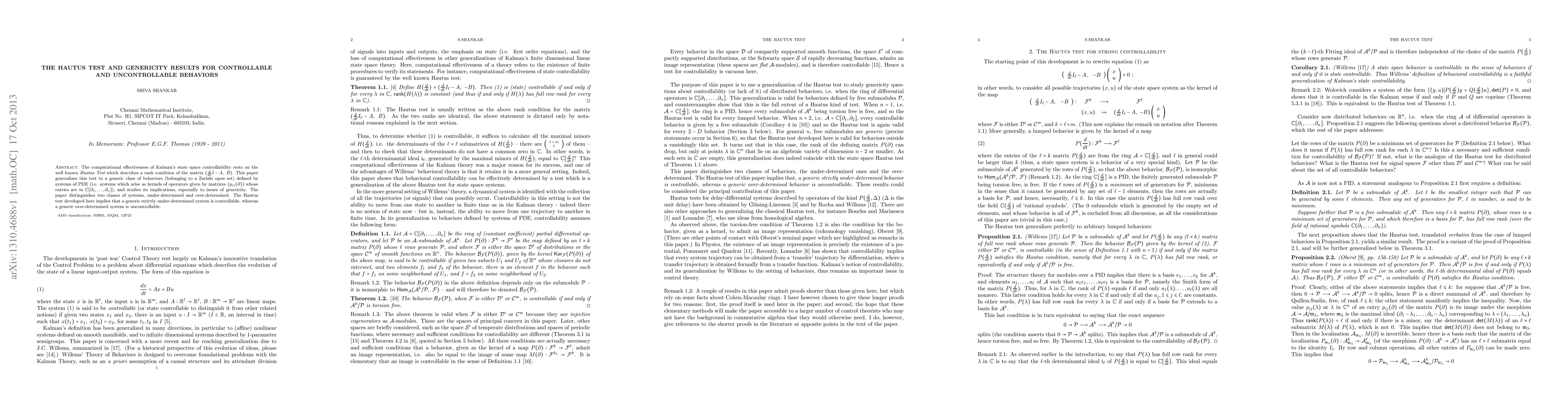 Summary: This paper extends the Hautus Test to systems governed by partial differential equations, providing new insights into the controllability of such systems. The generalization facilitates the analysis of both controllable and uncontrollable behaviors in these complex systems.