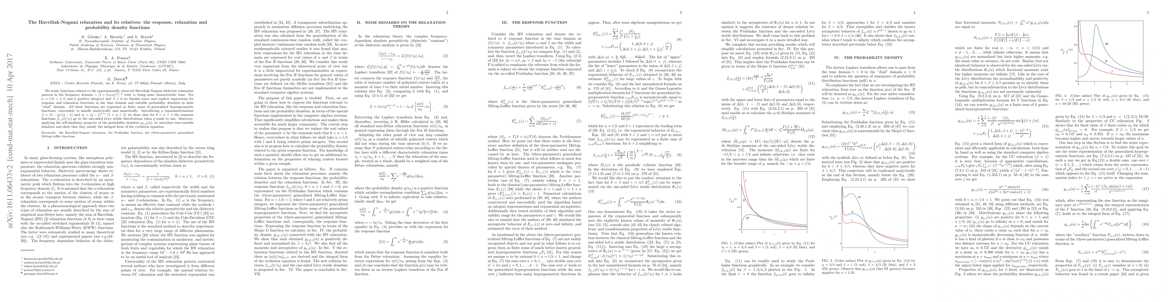 This paper studies the Havriliak-Negami dielectric relaxation pattern and derives explicit expressions for response and relaxation functions in the time domain. It also introduces two-variable densities that satisfy the integral form of the evolution equation.