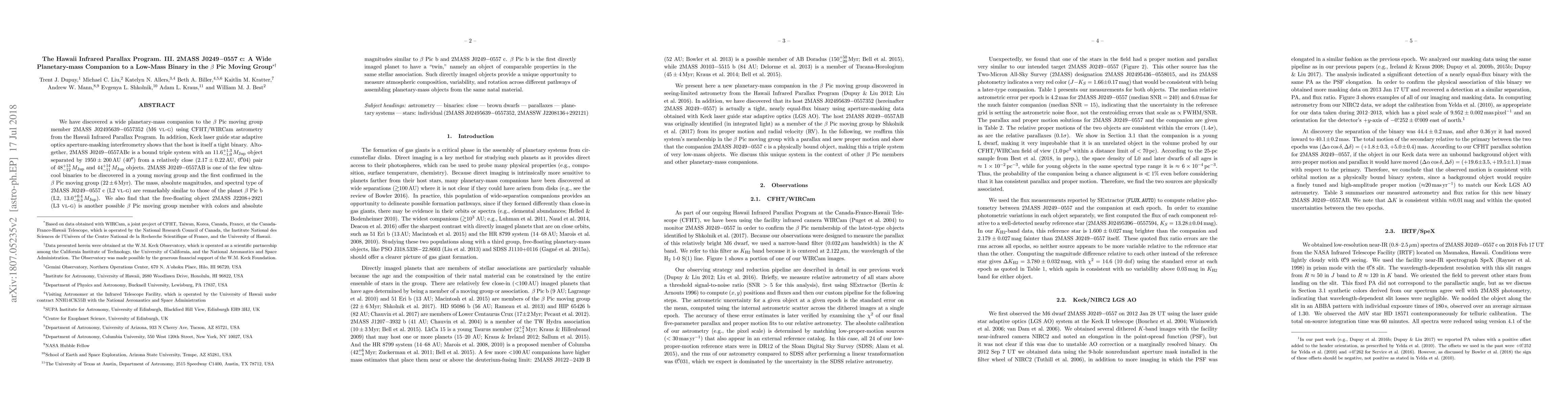 The Hawaii Infrared Parallax Program discovered a wide planetary-mass companion, 2MASS J0249-0557 c, to a low-mass binary in the β Pic moving group, forming a triple system. The companion has a mass similar to β Pic b, offering a unique opportunity to compare planetary formation pathways.