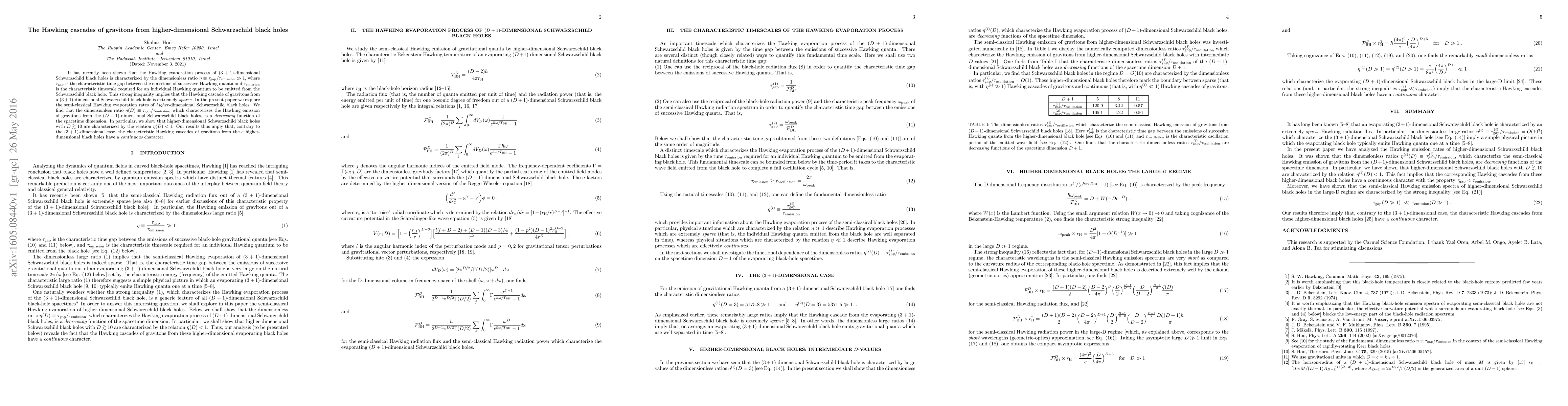 This paper investigates the semi-classical Hawking evaporation rates of higher-dimensional Schwarzschild black holes, finding that the dimensionless ratio characterizing the time gap between emissions decreases with increasing spacetime dimension. For dimensions $D\gtrsim 10$, the ratio becomes less than 1, indicating a continuous rather than sparse Hawking cascade of gravitons.