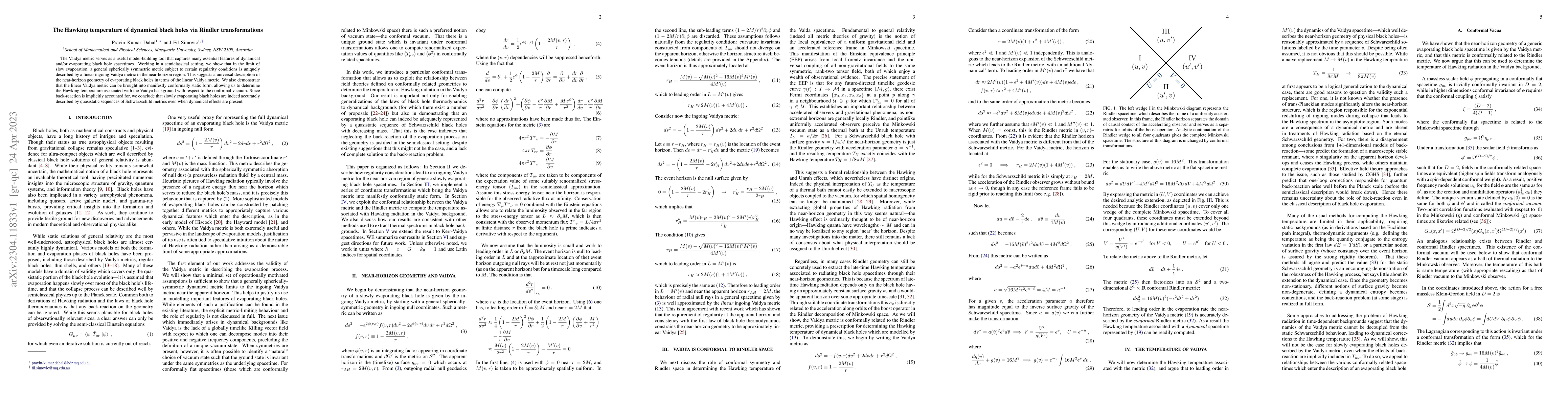 This paper demonstrates that the near-horizon geometry of slowly evaporating black holes can be described by a linear Vaidya metric, which can be transformed into a conformally static form. This allows for the determination of the Hawking temperature relative to the conformal vacuum, showing that dynamical black holes can be quasistatically modeled.