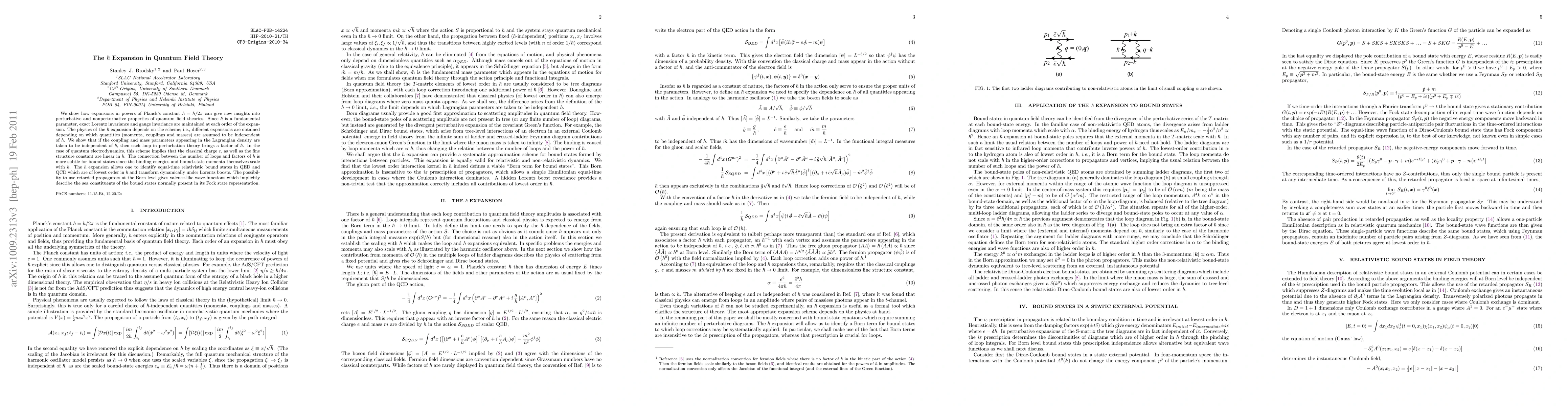 The hbar expansion elucidates perturbative and nonperturbative properties of quantum field theories by revealing how quantities scale with Planck's constant. It maintains Lorentz and gauge invariance while allowing identification of relativistic bound states in QED and QCD, showing that classical parameters are linear in hbar.