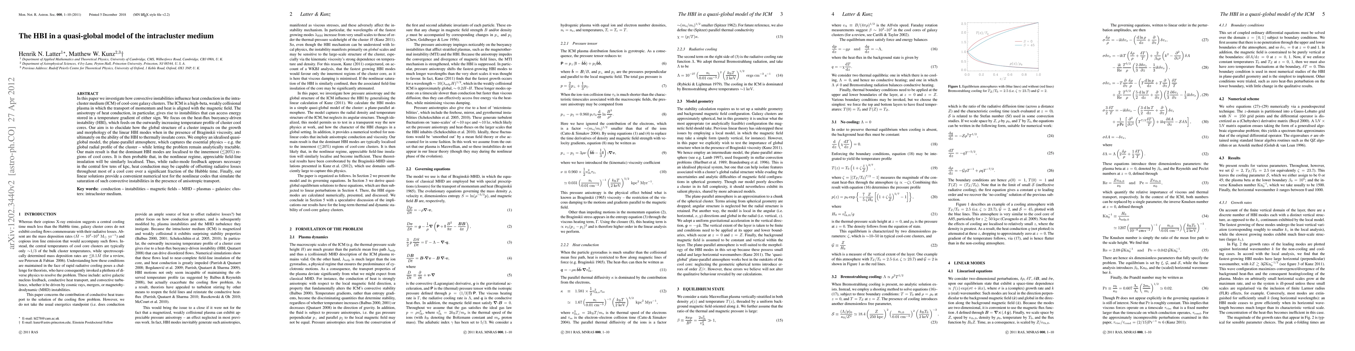 In this paper we investigate how convective instabilities influence heat conduction in the intracluster medium (ICM) of cool-core galaxy clusters. The ICM is a high-beta, weakly collisional plasma in which the transport of momentum and heat is aligned with the magnetic field. The anisotropy of heat conduction, in particular, gives rise to instabilities that can access energy stored in a temperature gradient of either sign. We focus on the heat-flux buoyancy-driven instability (HBI), which feeds on the outwardly increasing temperature profile of cluster cool cores. Our aim is to elucidate how the global structure of a cluster impacts on the growth and morphology of the linear HBI modes when in the presence of Braginskii viscosity, and ultimately on the ability of the HBI to thermally insulate cores. We employ an idealised quasi-global model, the plane-parallel atmosphere, which captures the essential physics -- e.g. the global radial profile of the cluster -- while letting the problem remain analytically tractable. Our main result is that the dominant HBI modes are localised to the the innermost (~<20%) regions of cool cores. It is then probable that, in the nonlinear regime, appreciable field-line insulation will be similarly localised. Thus, while radio-mode feedback appears necessary in the central few tens of kpc, heat conduction may be capable of offsetting radiative losses throughout most of a cool core over a significant fraction of the Hubble time. Finally, our linear solutions provide a convenient numerical test for the nonlinear codes that tackle the saturation of such convective instabilities in the presence of anisotropic transport.