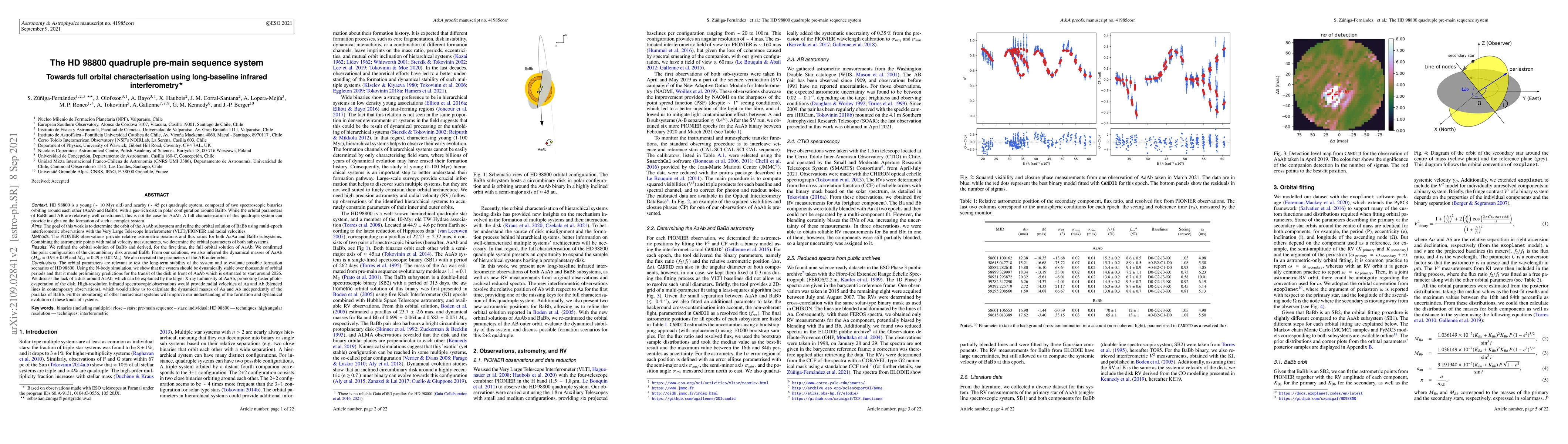 HD 98800 is a young ($\sim10$ Myr old) and nearby ($\sim45$ pc) quadruple system, composed of two spectroscopic binaries orbiting around each other (AaAb and BaBb), with a gas-rich disk in polar configuration around BaBb. While the orbital parameters of BaBb and AB are relatively well constrained, this is not the case for AaAb. A full characterisation of this quadruple system can provide insights on the formation of such a complex system. The goal of this work is to determine the orbit of the AaAb subsystem and refine the orbital solution of BaBb using multi-epoch interferometric observations with the VLTI/PIONIER and radial velocities. The PIONIER observations provide relative astrometric positions and flux ratios for both AaAa and BaBb subsystems. Combining the astrometric points with radial velocity measurements, we determine the orbital parameters of both subsystems. We refined the orbital solution of BaBb and derived, for the first time, the full orbital solution of AaAb. We confirmed the polar configuration of the circumbinary disk around BaBb. From our solutions, we also inferred the dynamical masses of AaAb ($M_{Aa} = 0.93 \pm 0.09$ and $M_{Ab} = 0.29 \pm 0.02$ M$_{\odot}$). We also revisited the parameters of the AB outer orbit. Using the N-body simulation, we show that the system should be dynamically stable over thousands of orbital periods and that it made preliminary predictions for the transit of the disk in front of AaAb which is estimated to start around 2026. We discuss the lack of a disk around AaAb, which can be explained by the larger X-ray luminosity of AaAb, promoting faster photo-evaporation of the disk. High-resolution infrared spectroscopic observations would provide radial velocities of Aa and Ab (blended lines in contemporary observations), which would allow us to calculate the dynamical masses of Aa and Ab independently of the parallax of BaBb.