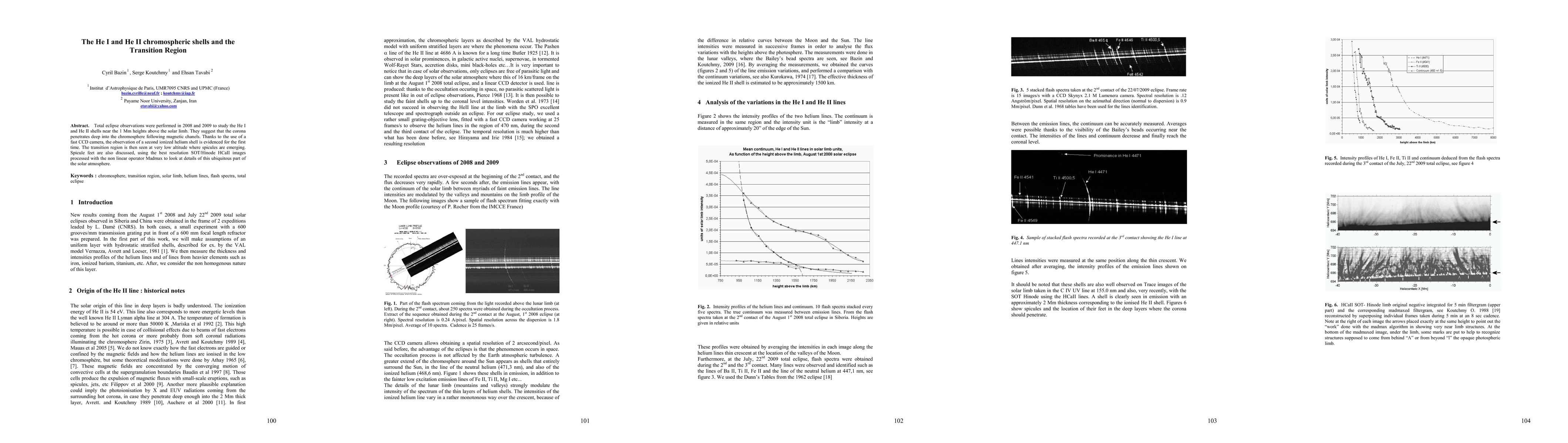 Total eclipse observations in 2008-2009 revealed He I and He II chromospheric shells near 1 Mm above the limb, indicating coronal penetration via magnetic channels. A second ionized helium shell was observed for the first time, with the transition region seen at low altitudes where spicules emerge. High-resolution SOT/Hinode HCaII images analyzed using Madmax operator provided insights into spicule feet.